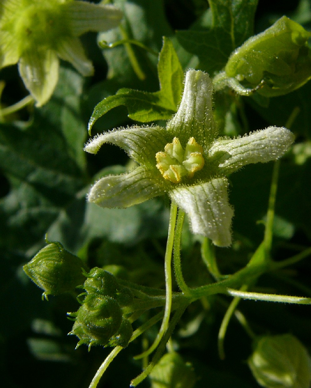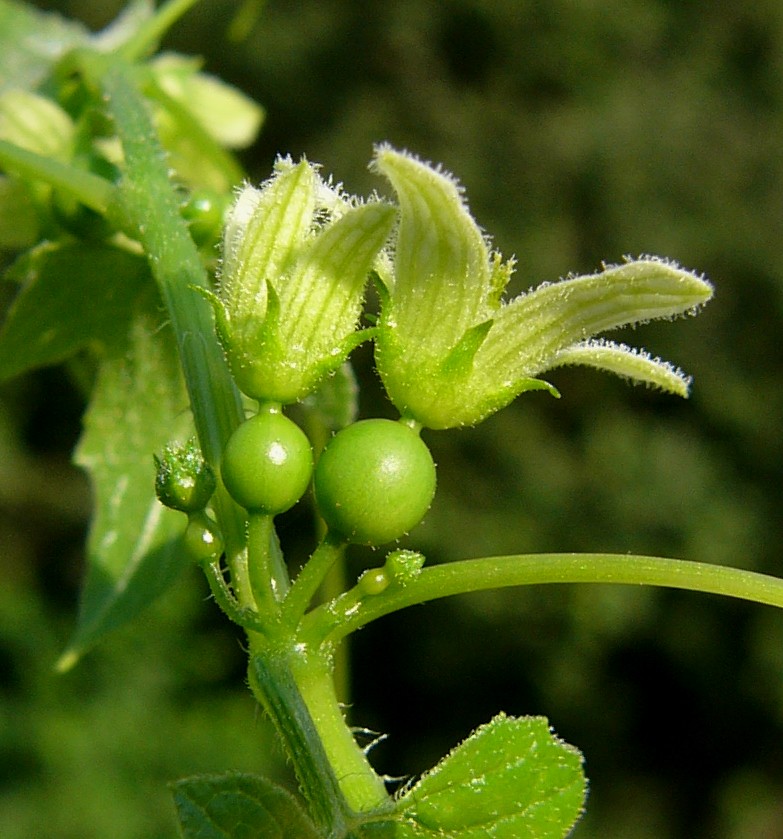 Bryonia - Pflanze 2- häusig, Früchte rot, weibliche Blüten mit behaarten Griffeln