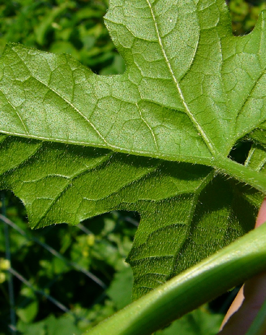 Griechenland Kelch und Blütenstiele fast kahl, unreife Früchte weiß gefleckt Blätter deutlich gelappt, Blattlappen ohne oder mit wenigen Zähnen oberseits behaart > 3
