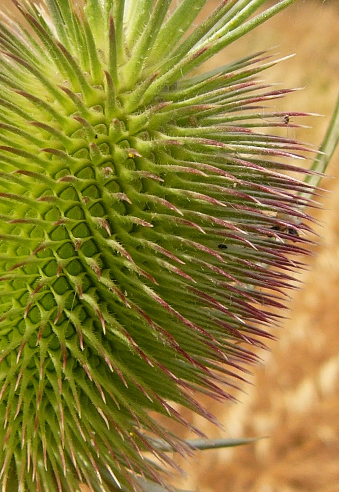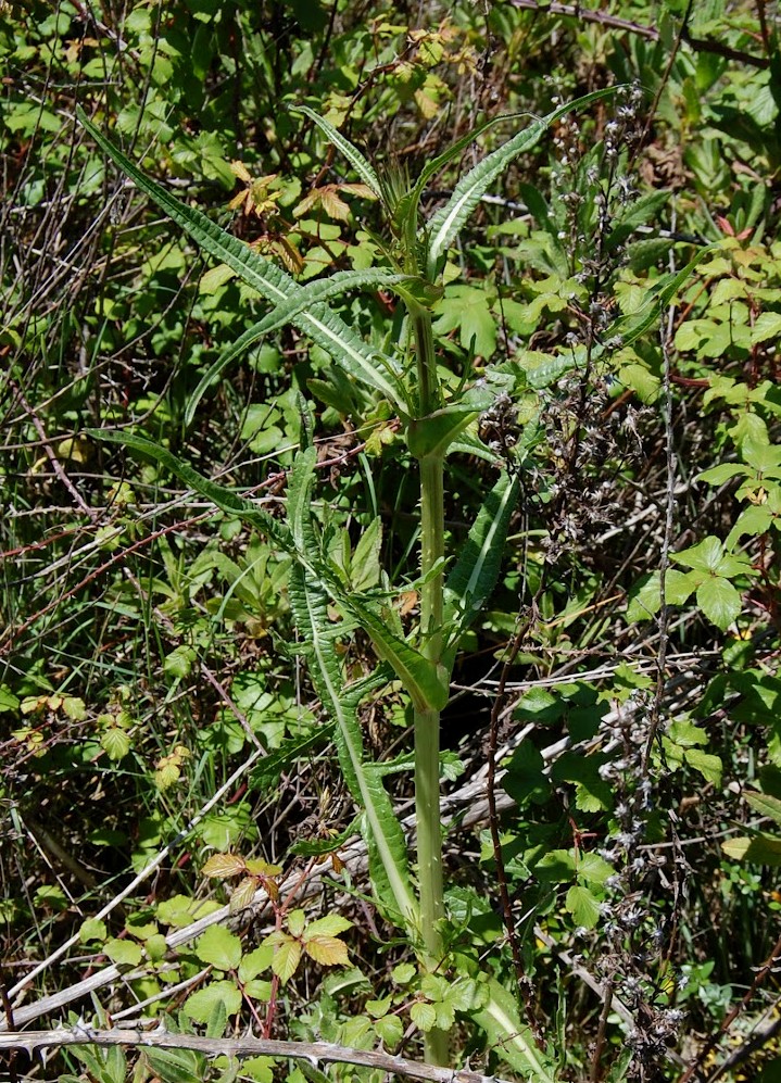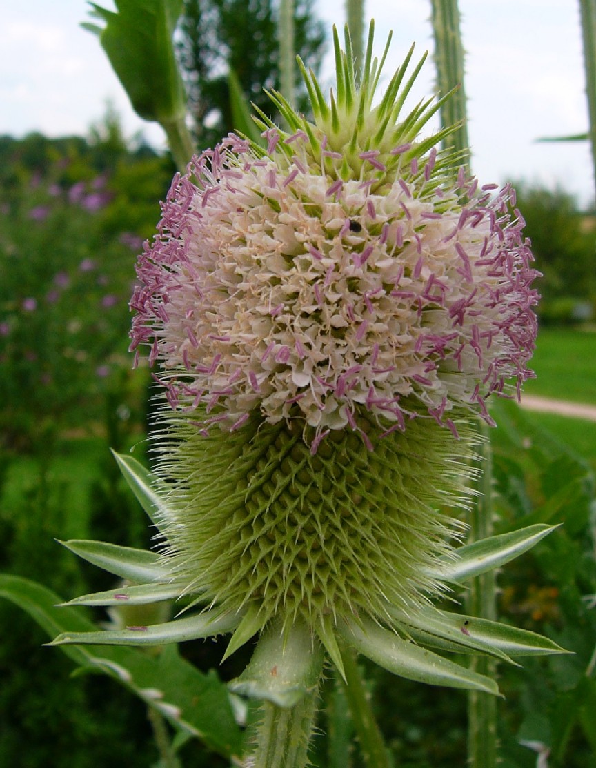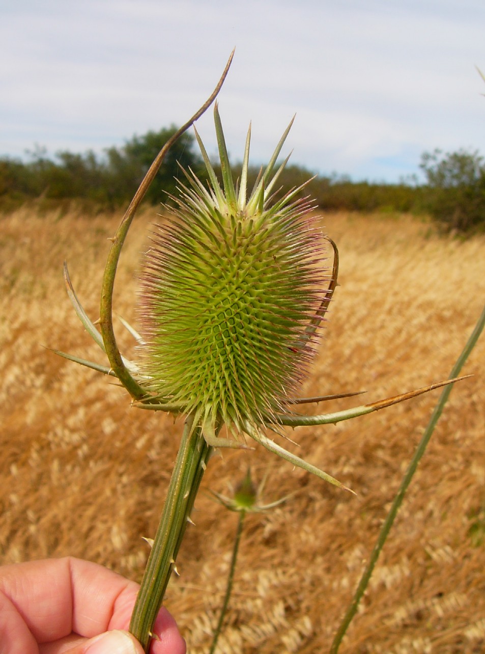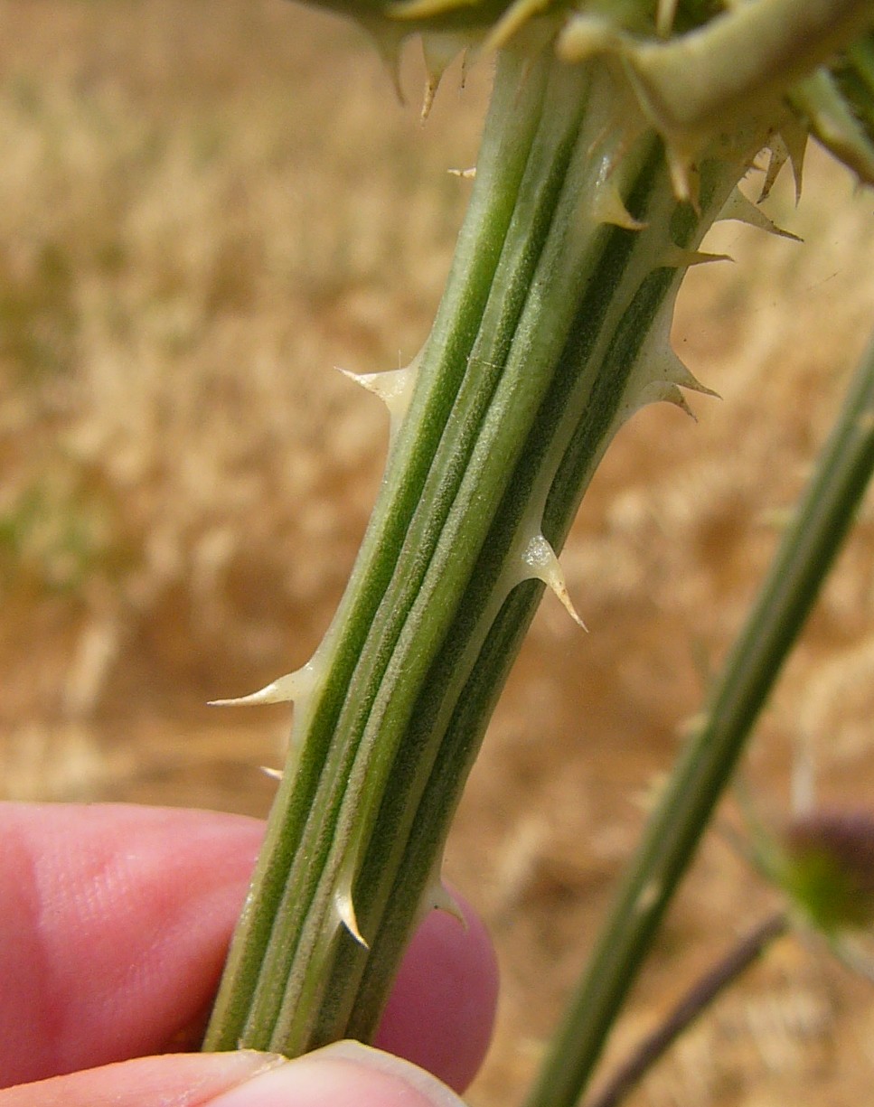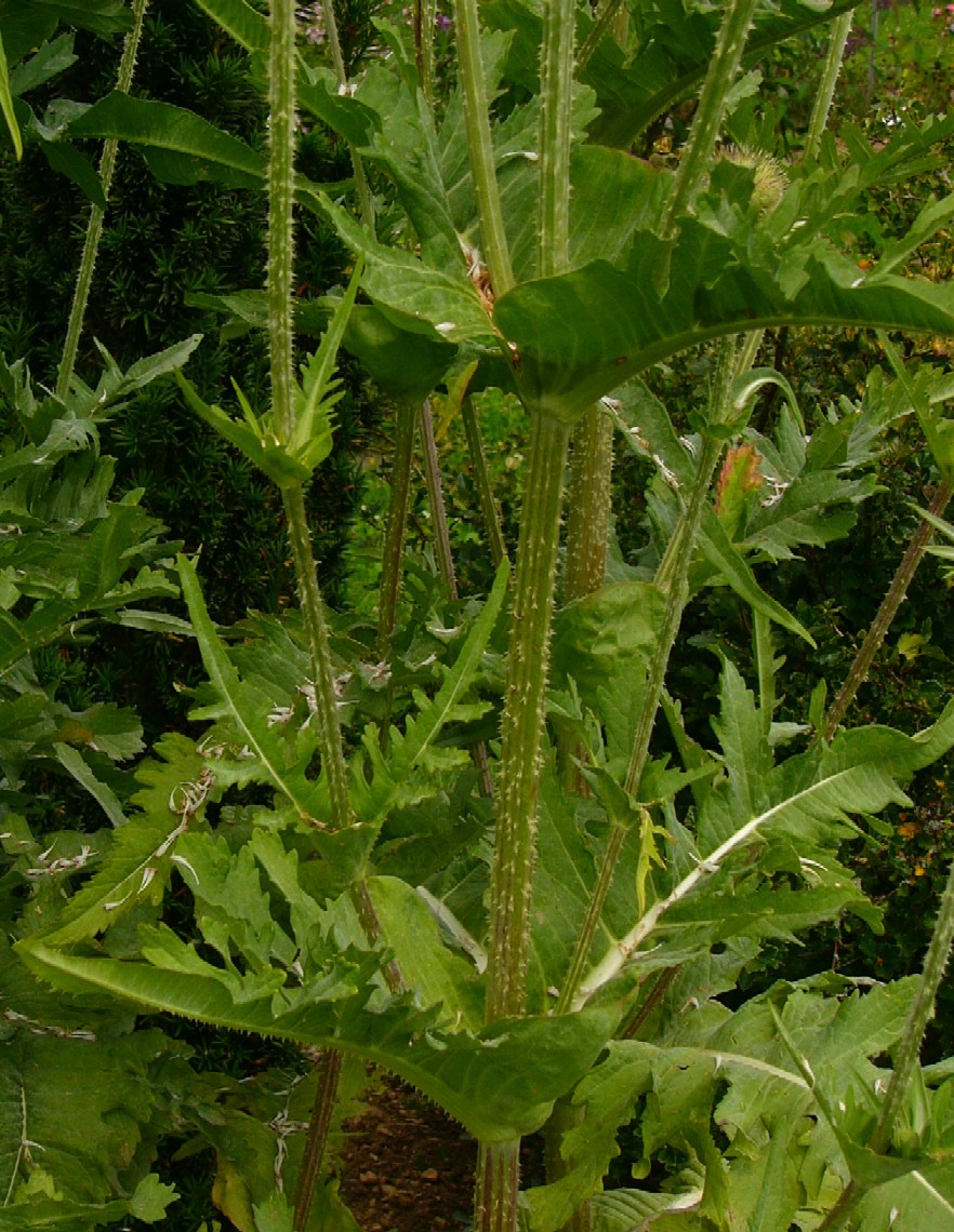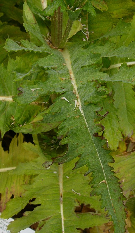 Untere Stängelblätter fiederteilig, auf der Unterseite bedornt , am Grund verwachsen