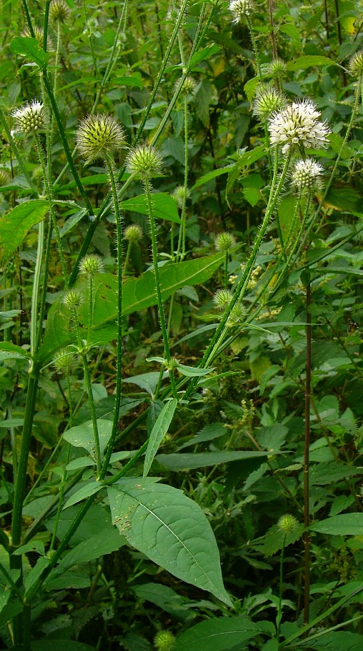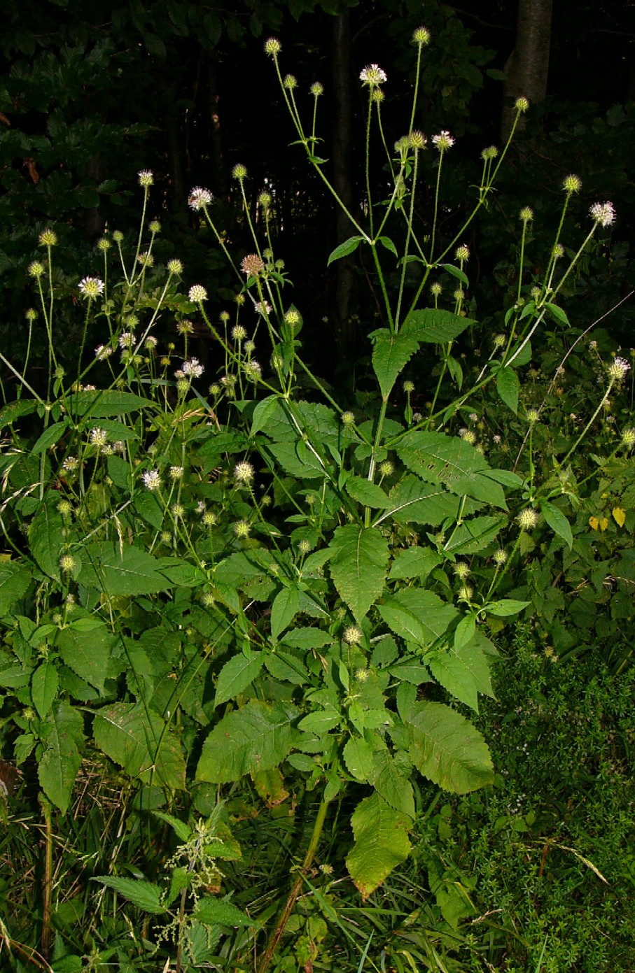 Blüten gelblich, Köpfchen kugelig, 30 - 40 mm im Durchmesser,