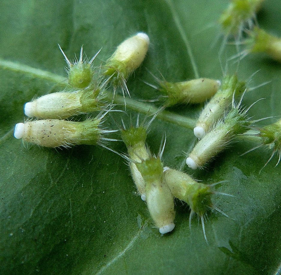 Köpfchenstiel kurzhaarig und mit zahlreichen langen Haaren,