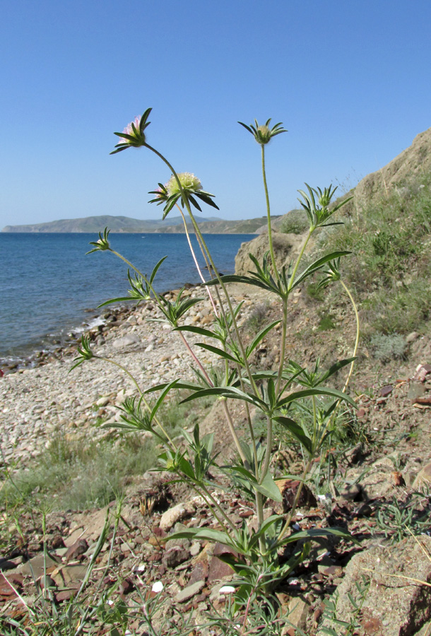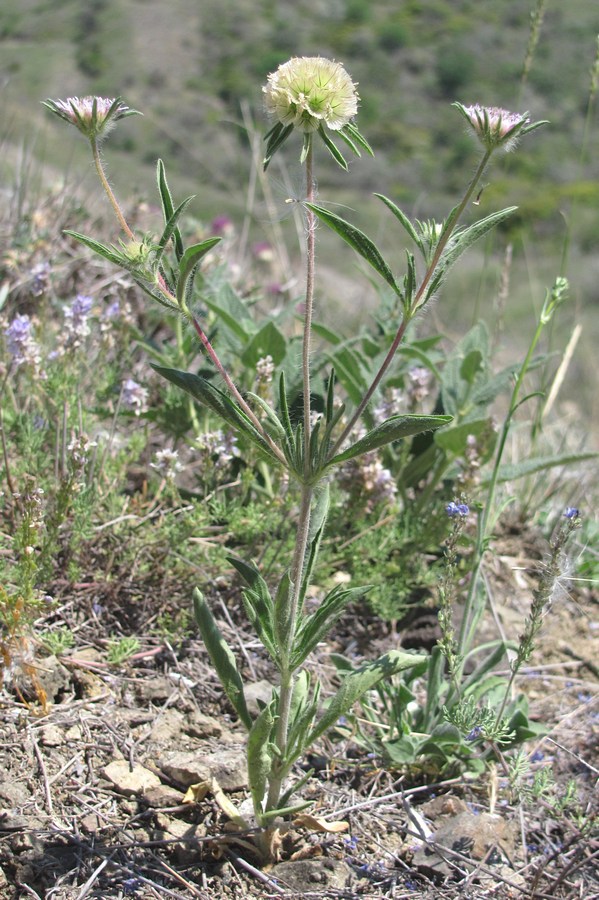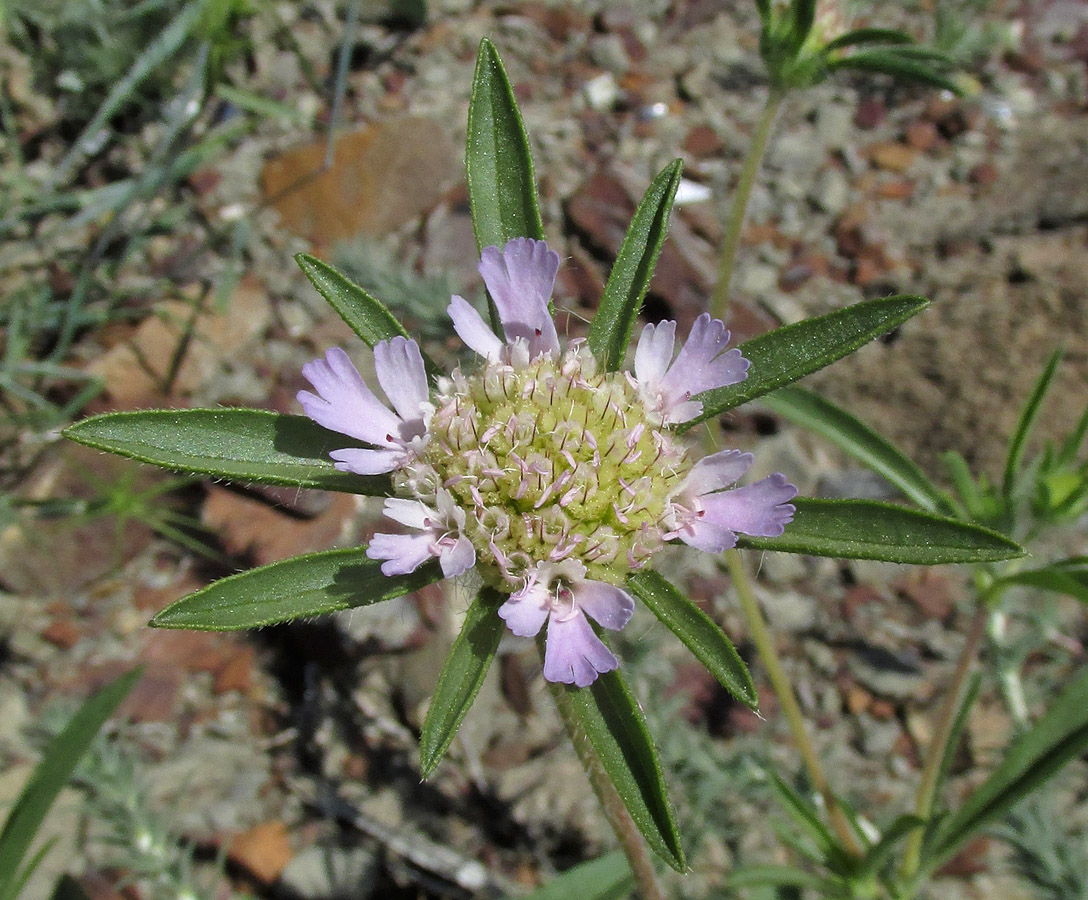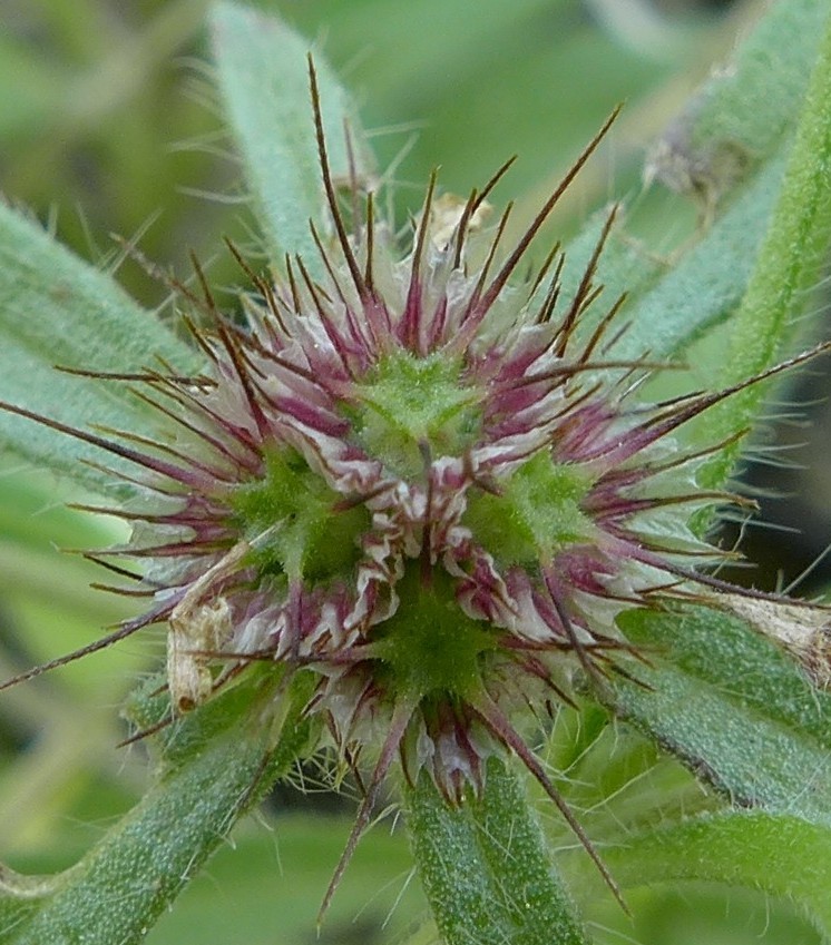 Köpfchen 20 - 30 mm im Durchmesser, Tragblätter der Blüten oval Kelch mit 5 Borsten, Borsten länger als der