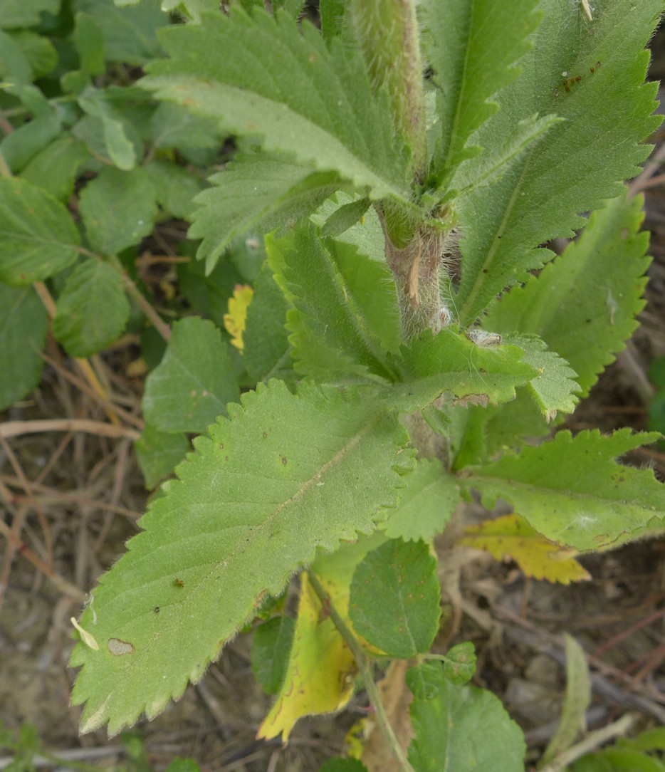 Gruben auf dem Außenkelch durch Haare verdeckt, Kelchsaum mit 30 - 33 Adern Mittlere Stängelblätter tief fiederschnittig, Endabschnitt kaum vergrößert