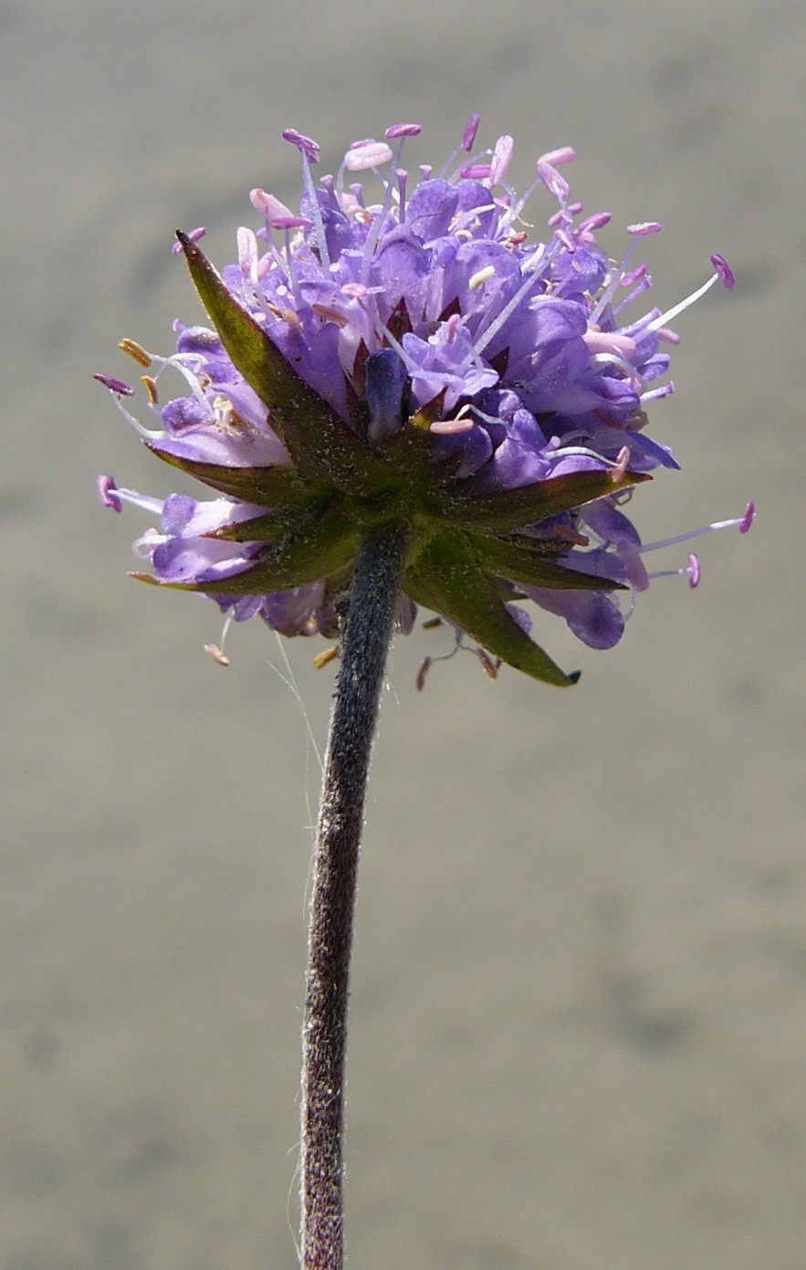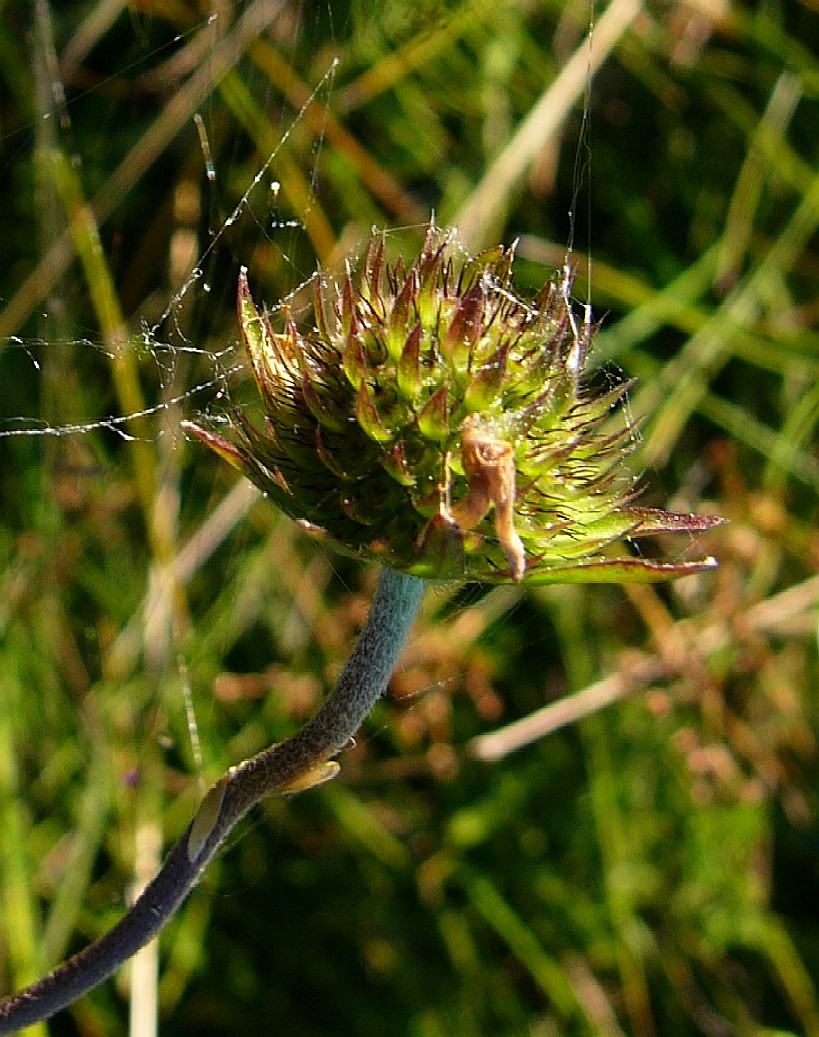 Bei abgeblühten Köpfchen erkennt man die 5 schwarze Borsten des Innenkelches