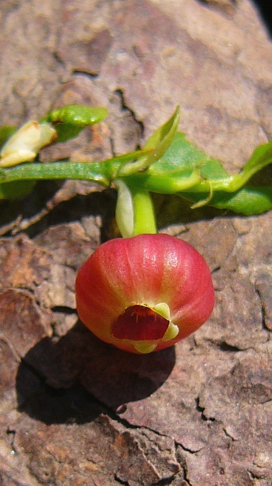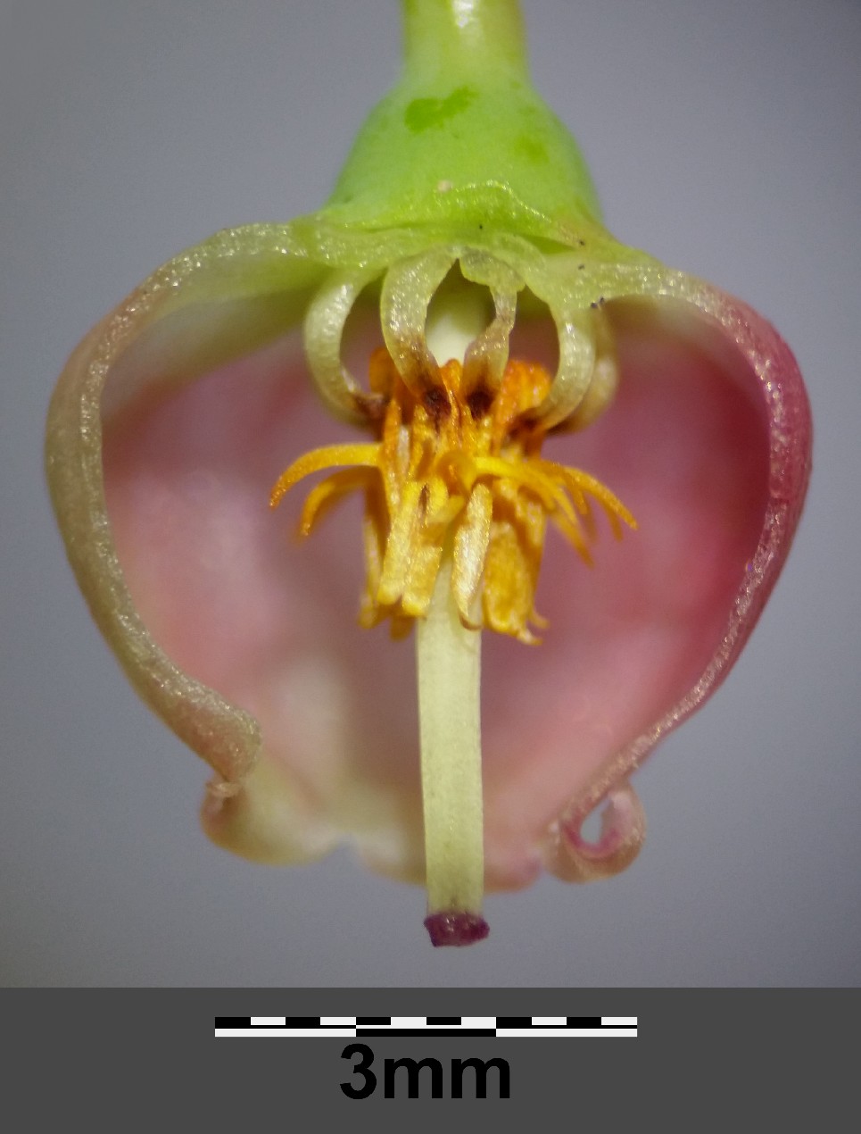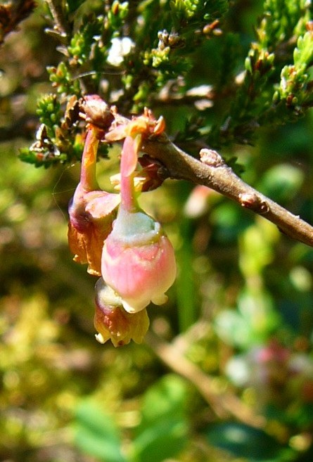 Krone 5 - 8 mm lang, urnenförmig, anfangs kräftig rosa, später verblassend, fast vollständig verwachsen, vorne verengt, Kronzipfel umgebogen