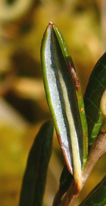 Blätter länglich- lanzettlich, ledrig, 10 - 40 mm lang, 2 - 8 mm