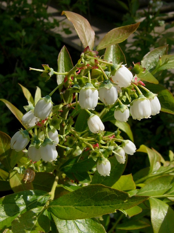 Blüten einzeln oder in Trauben, glockig, weiß oder rosa,