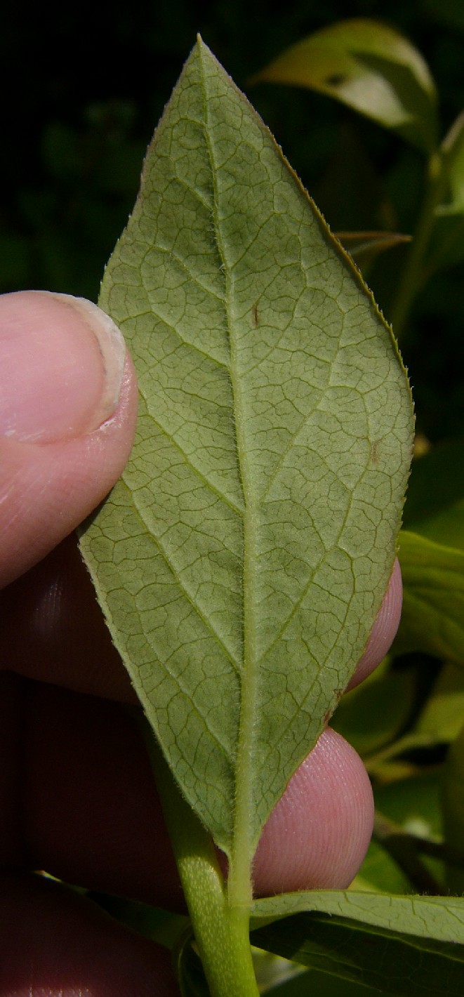 Blätter lanzettlich oder eiförmig, Blattunterseite grün Früchte = Beeren oder Scheinbeeren > 2