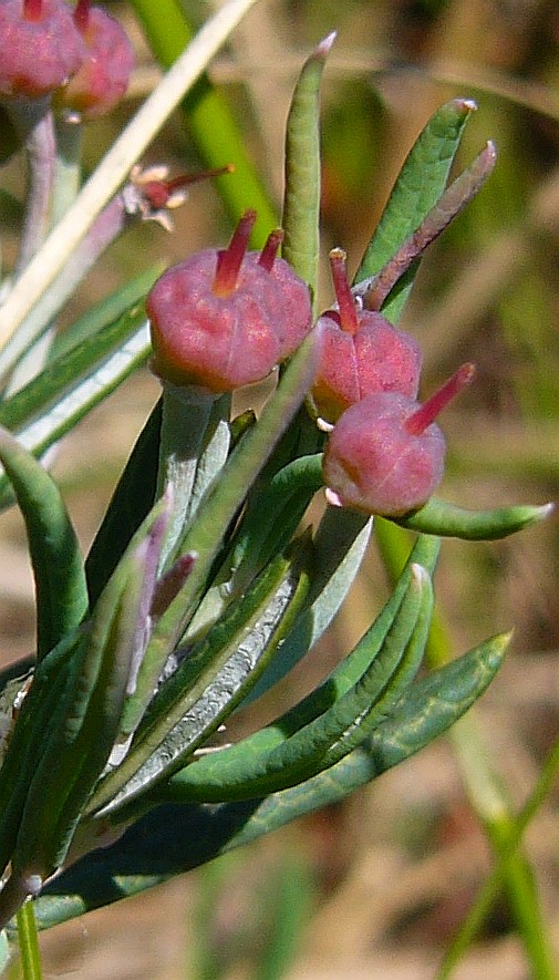 Blätter linealisch, Blattunterseite weiß oder bläulich Früchte: Fünfächerige Kapseln > 1 |