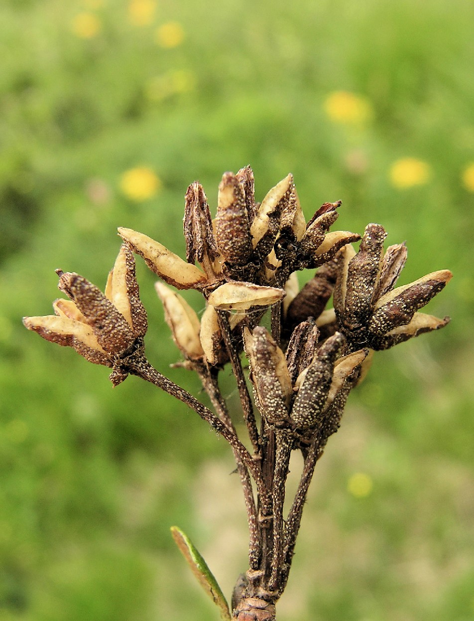 Die Früchte öffnen sich 5- zähnig und reifen erst im Jahr nach der Blüte aus