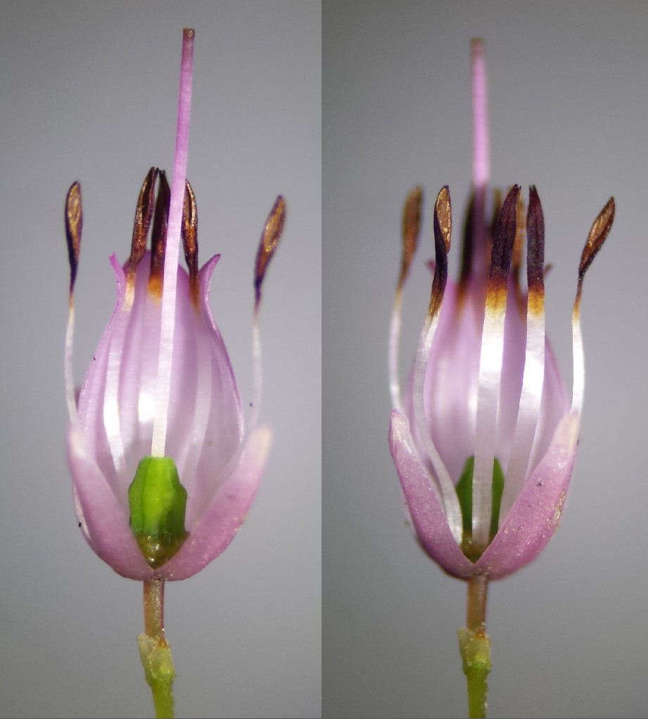 Blütenstiele ca. so lang wie die hellrosafarbenen Kelchblätter