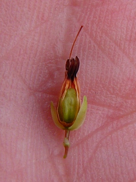 Früchte = vierfächrige Kapseln Früchte werden von den vertrockneten Kronblättern verdeckt Blätter zu 3 - 4 quirlig, kahl, nadelförmig,