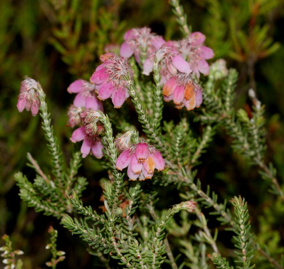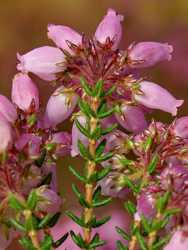 Erica - Blüten rosa, Staubbeutel in die Krone eingeschlossen, Blätter steifhaarig gewimpert