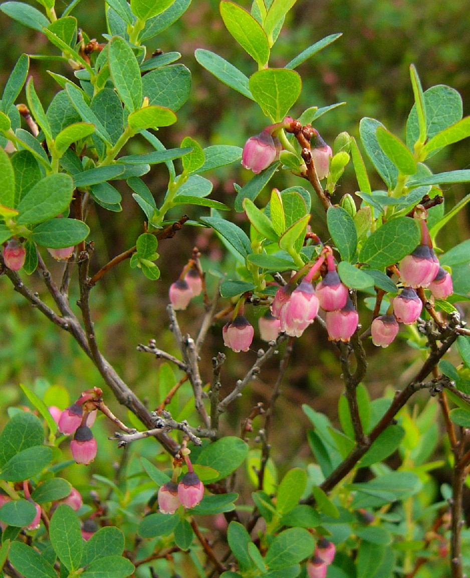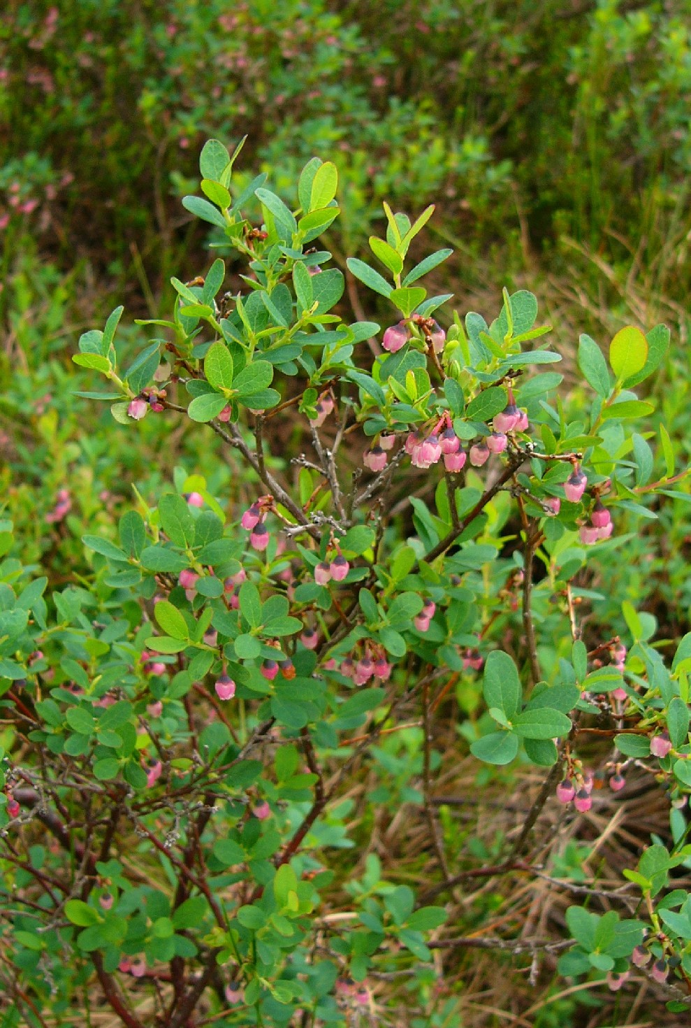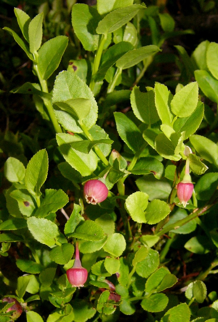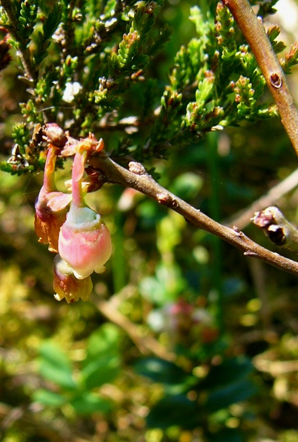 Blüten weiß oder rosa, in hängenden Trauben (im Gegensatz zu Vaccinium myrtillus)