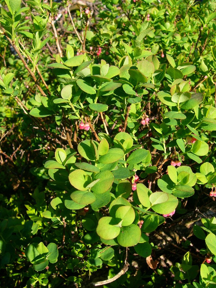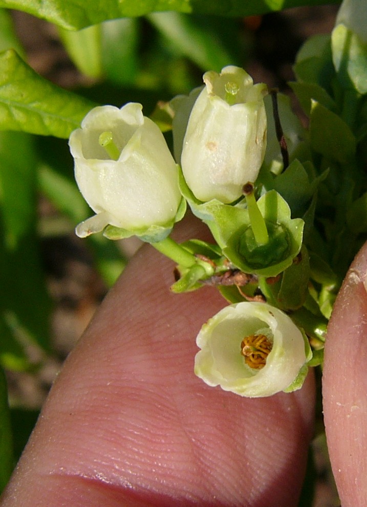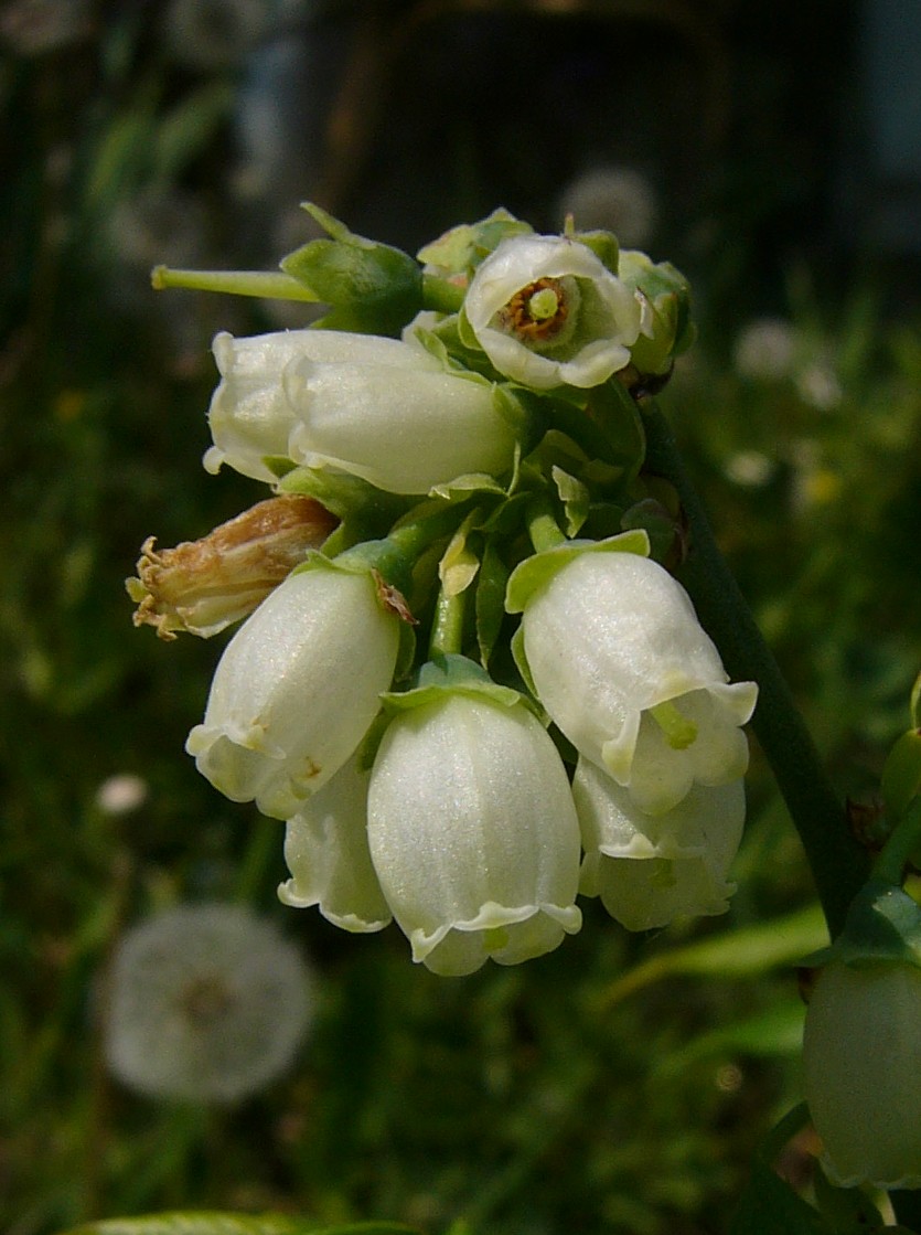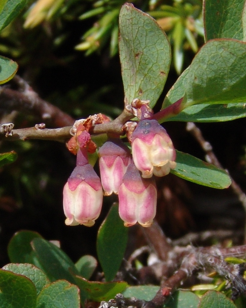 Blüten weiß oder rosa, in hängenden Trauben (im Gegensatz zu Vaccinium myrtillus)