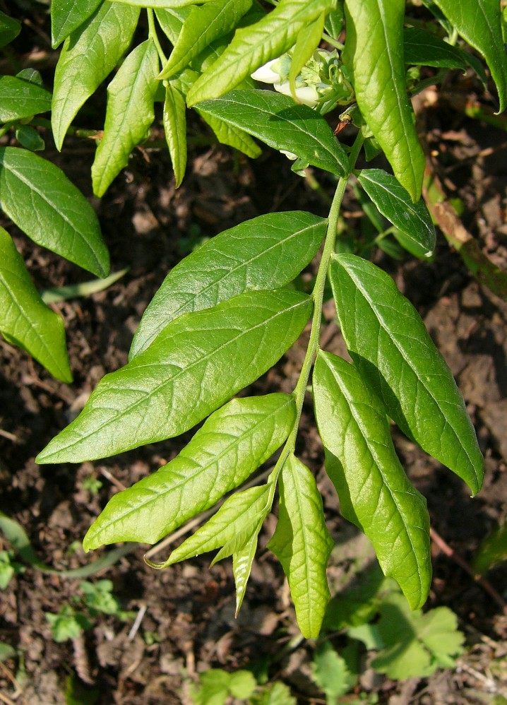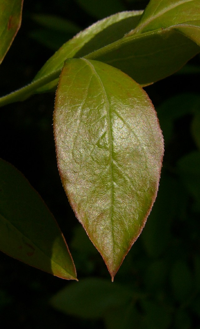Blätter 20 - 80 mm lang, 10 - 25 mm breit, spitz zulaufend, oberseits kahl