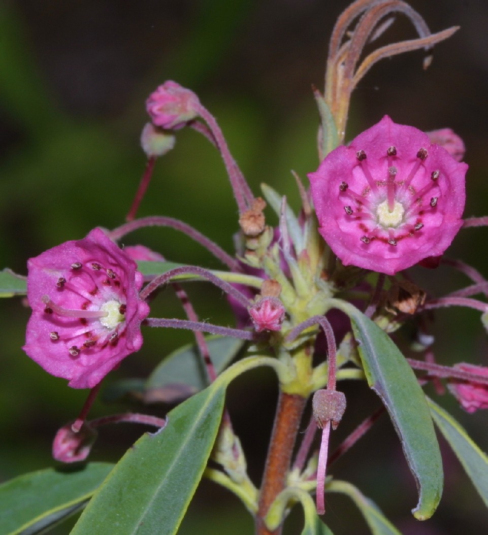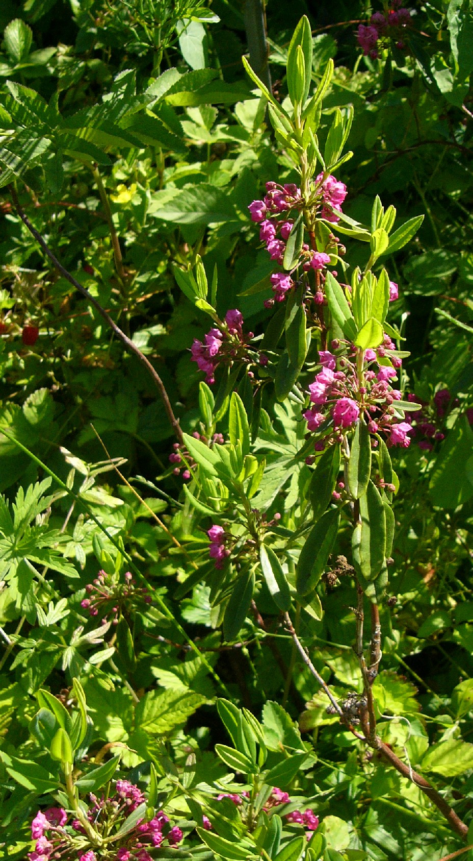 zu 3 wirtelig, 2 - 3,5 cm lang, Blüten seitenständig, rosarot bis rot, ca. 1 cm im Durchmesser > 1