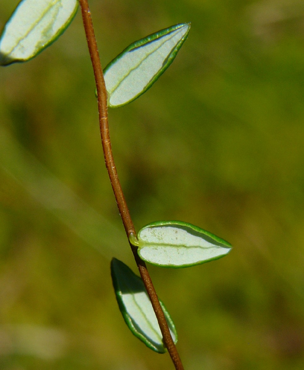 Beeren 5 - 7 mm im Durchmesser, +/- birnenförmig Blätter 3 - 5 mm lang, am Grund am breitesten,