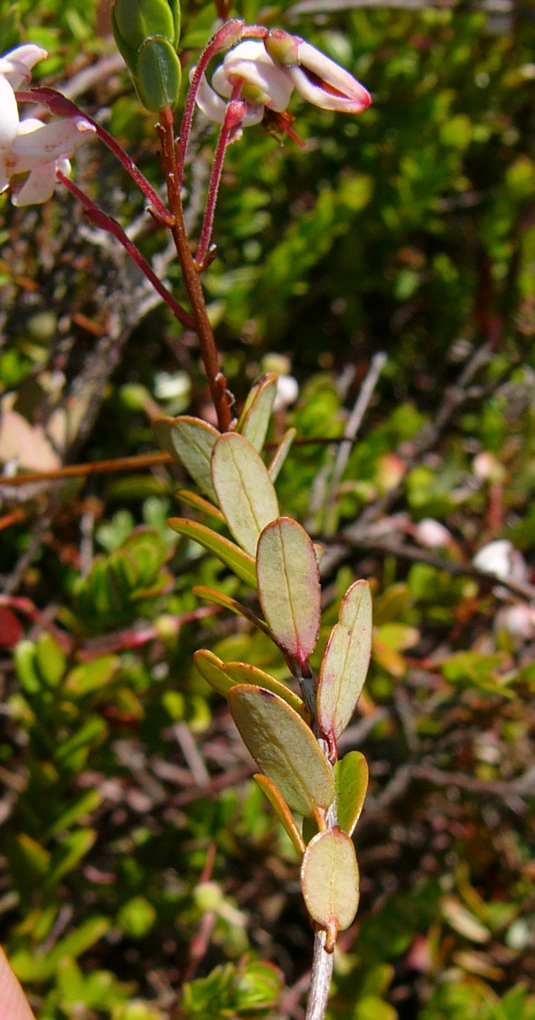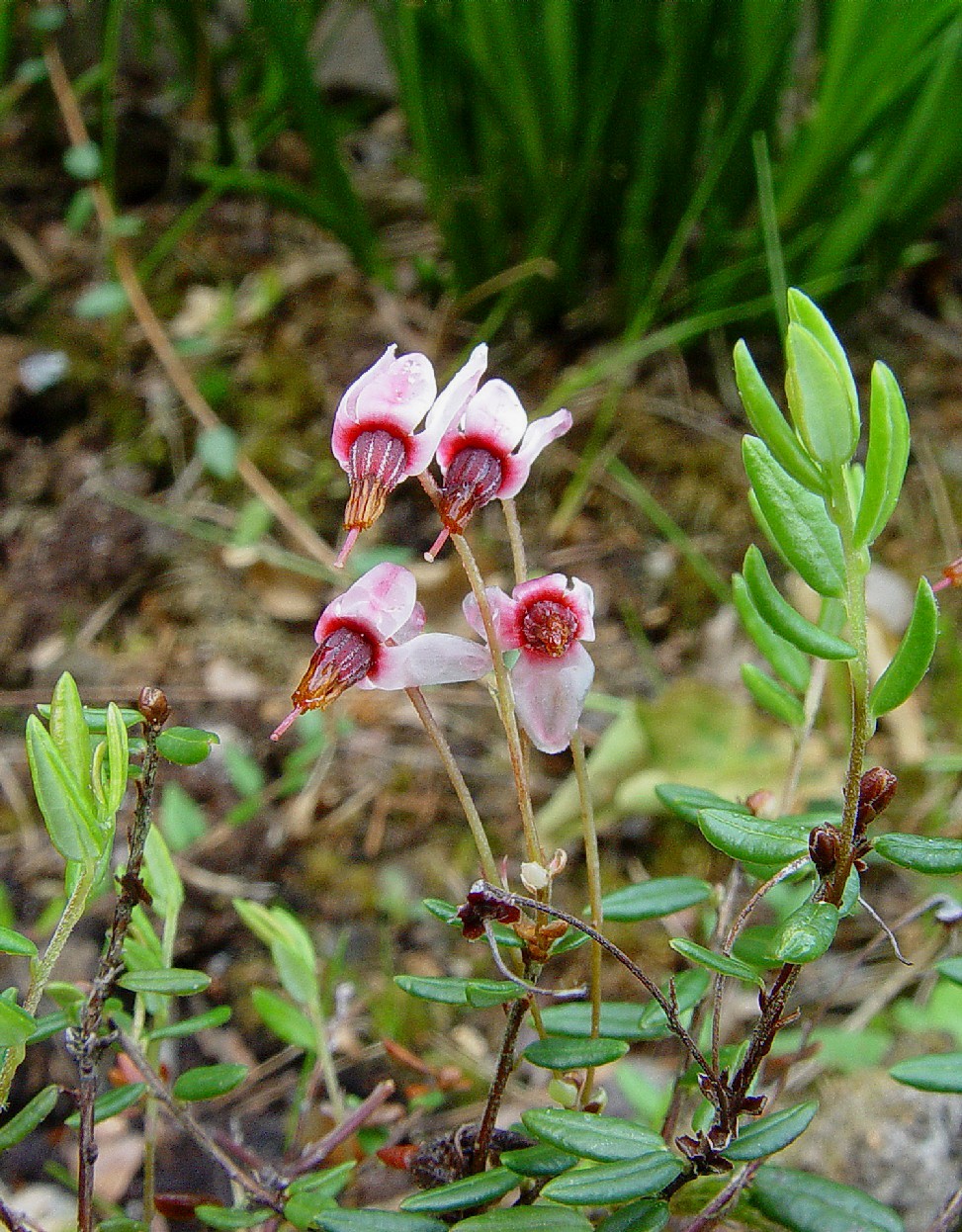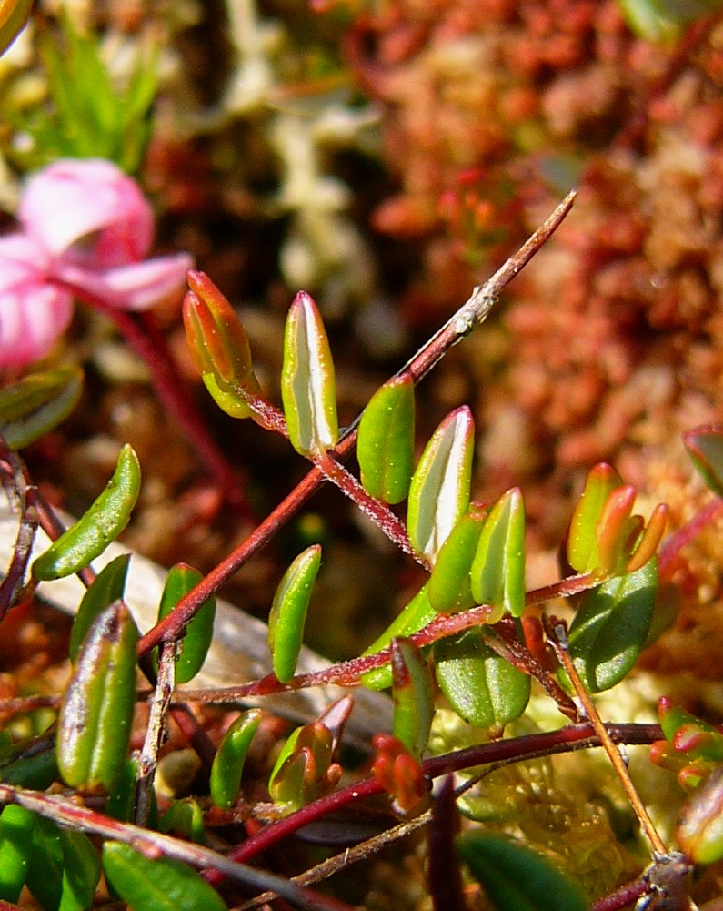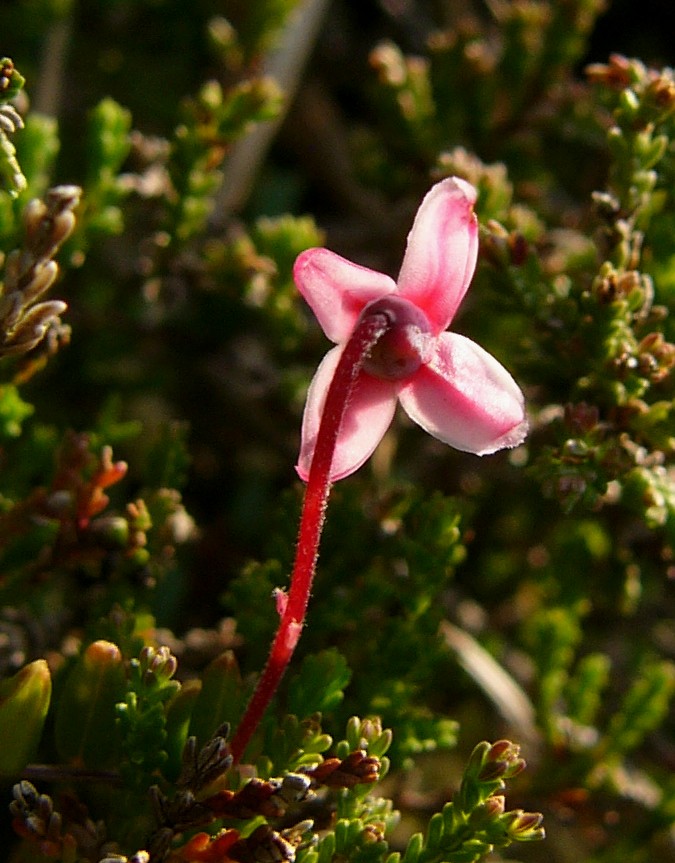 2 Blüten endständig, ohne Laubtrieb, Blätter spitz, 3 - 8 mm lang, am Rand umgerollt