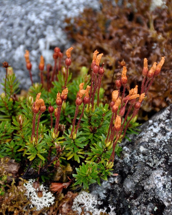 Kelchblätter weiß oder rosa, meist 4, viel kürzer als die Krone Kron- und Kelchblätter zur Fruchtzeit nicht abfallend, die Früchte einschließend Früchte = vierfächerige Kapseln, Blätter nadelförmig, zu 3 - 4 quirlig,