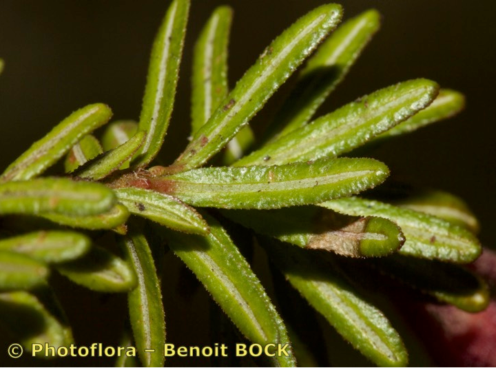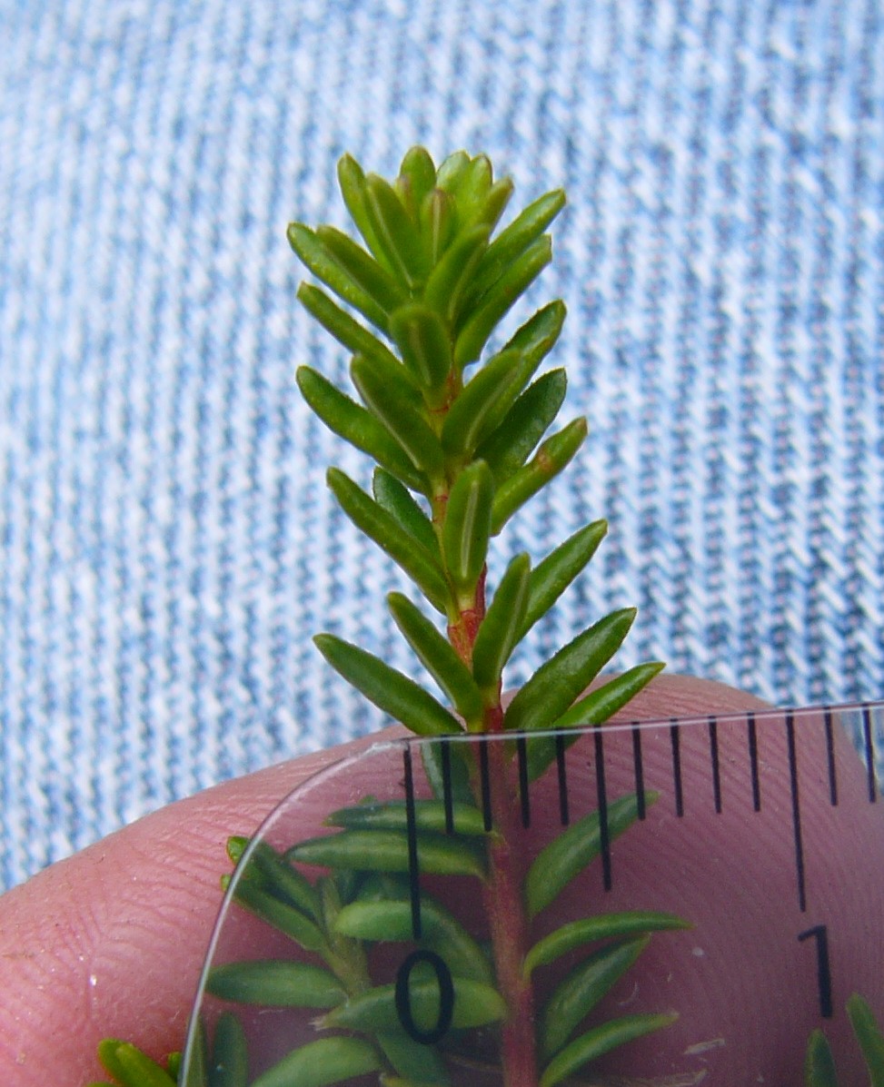 Blätter linealisch, 6 - 12 mm lang, 2 mm breit, ledrig, vorne