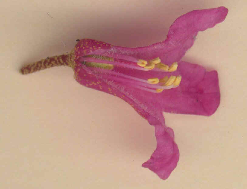 Krone dunkelrot, glockig, schülfrig, bis 20 mm lang,