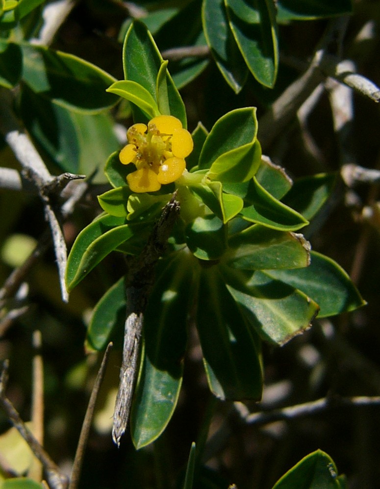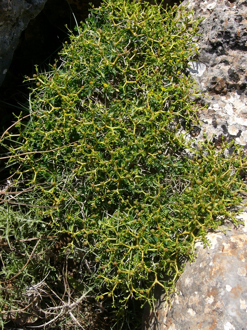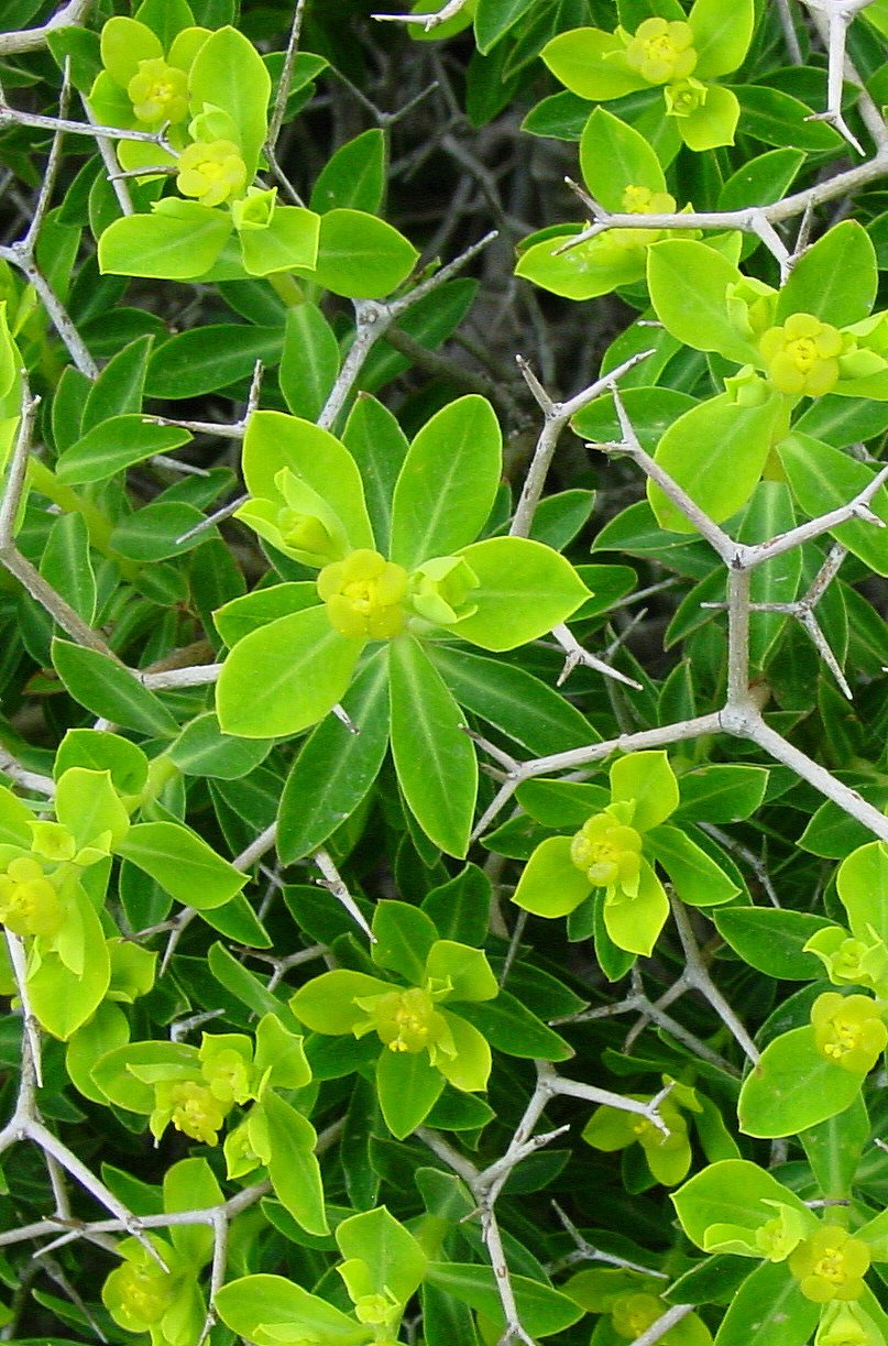 IV - VI, Felsen, Phrygana, Garigue (0 - 1000 m) Synonyme: English name: Weltweite Verbreitung: Etymologie: 2n = 14 Euphorbia acanthothamnos ist in Griechenland ein charakteristischer Bestandteil der Phrygana.