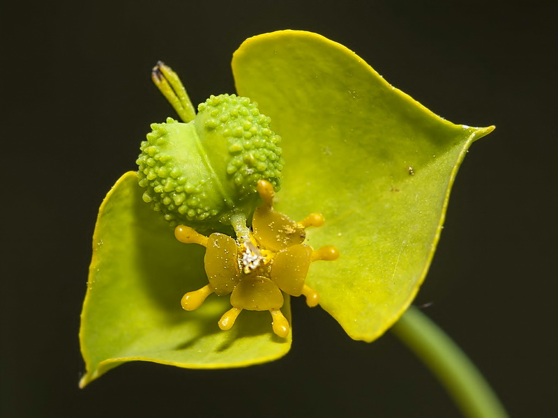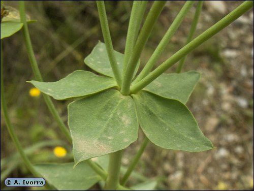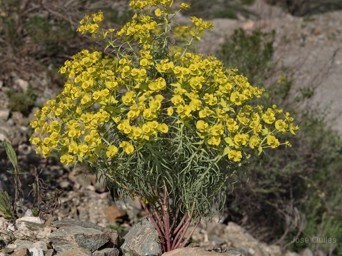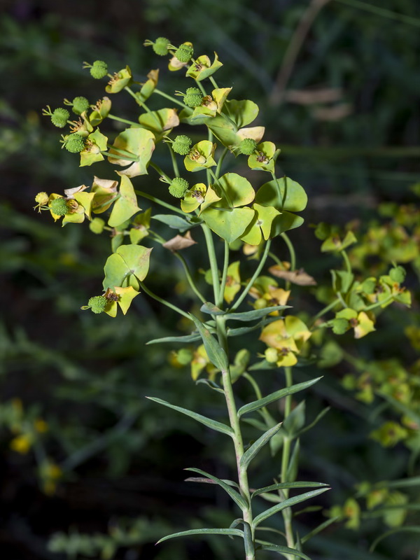 Euphorbia- Pflanze verholzt, Kapsel warzig, Blätter 1 - 5 mm breit
