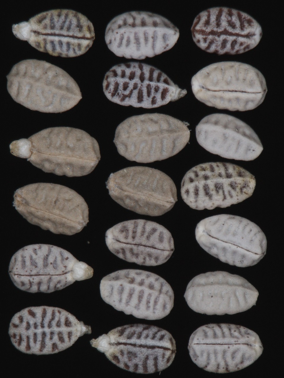 Samen 1,3 - 2 mm lang, 0,7 - 1,3 mm breit, eiförmig, hellgrau oder