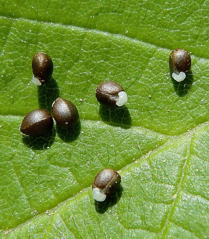 Kapsel 4 - 5 mm im Durchmesser, mit kurzen und langen, schlanken Warzen, Samen 3 mm lang, dunkelgrau