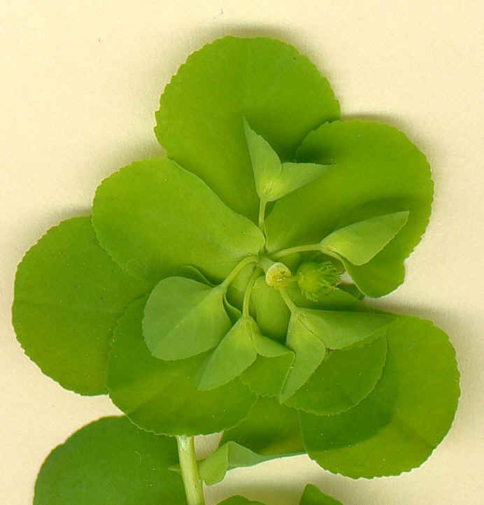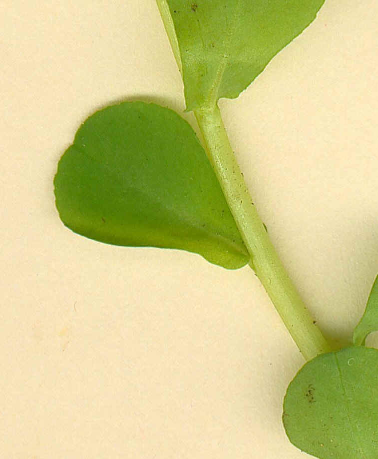 Blätter breit oval, am Grund keilig "löffelförmig", vorne stumpf gesägt