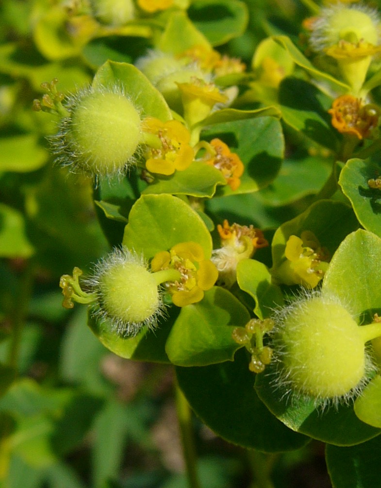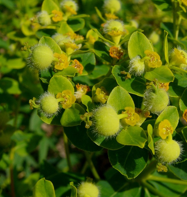 Euphorbia - Pflanze krautig, Drüsen ohne Hörnchen, Kapsel behaart, Hüllchenblätter kahl