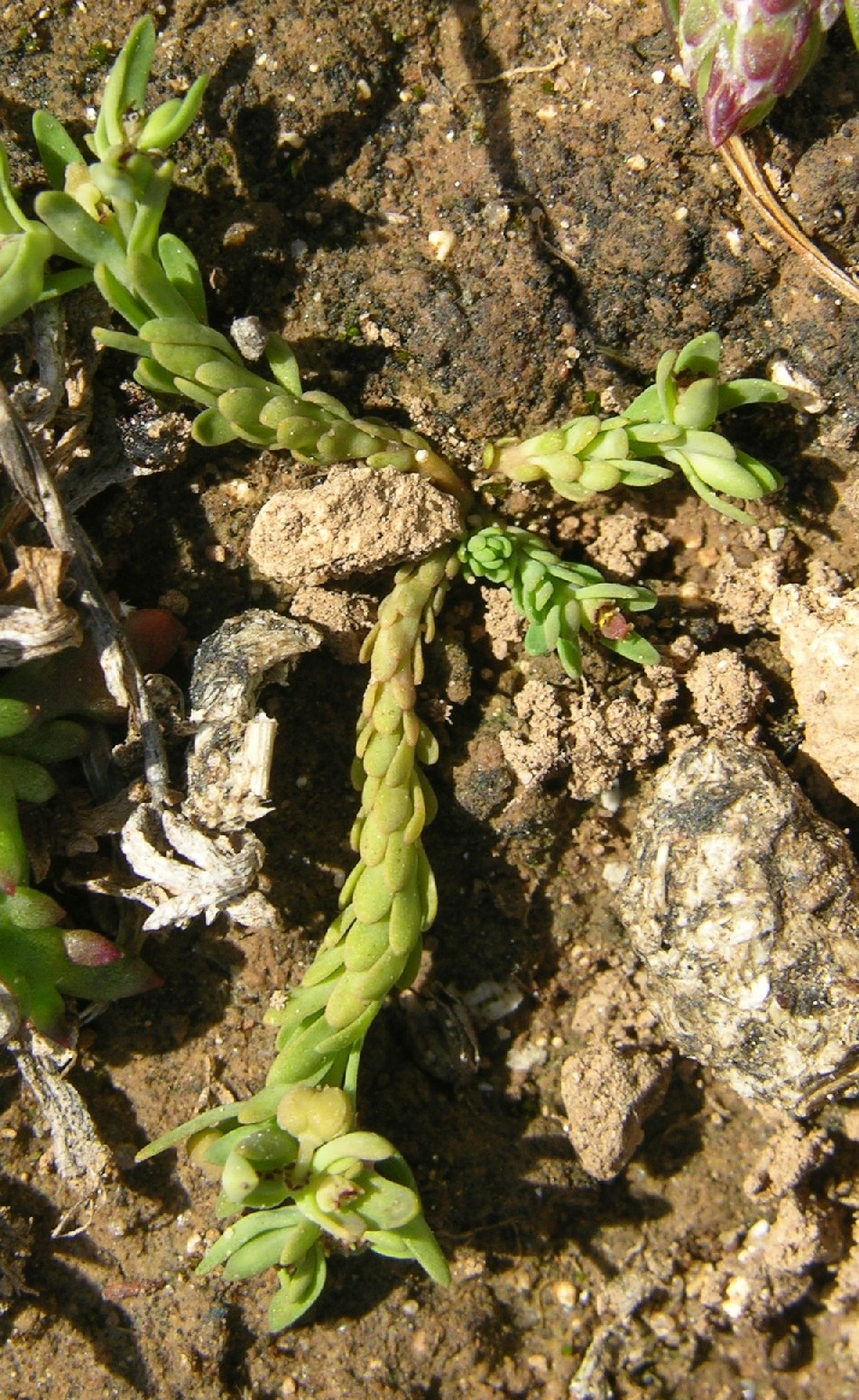 | Endemit in Menorca Pflanze nur 5 - 15 mm hoch, Blätter dachziegelig 1 - 2 mm lang, 0,8 mm breit > Euphorbia nurae