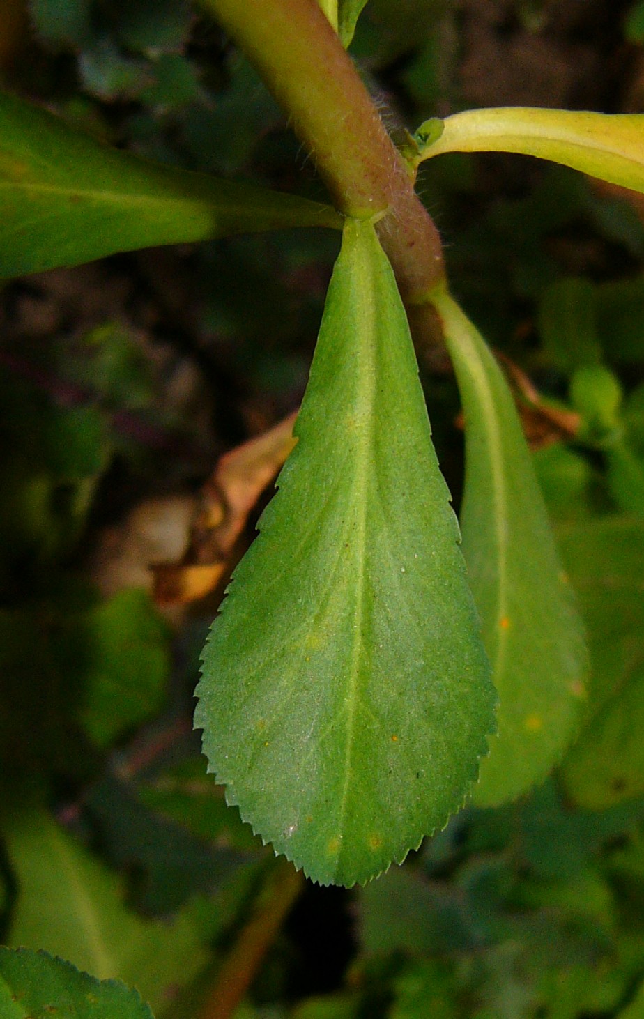 Stängelblätter löffelförmig, vorne fein gesägt > Euphorbia helioscopia |