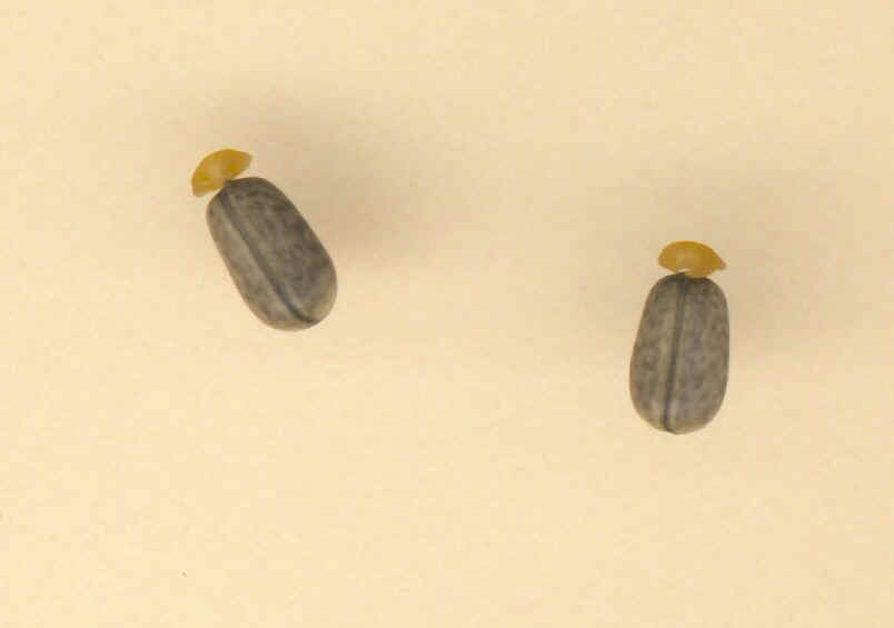 Samen elliptisch, ca. 4 mm lang, 2,5 mm breit, grau,