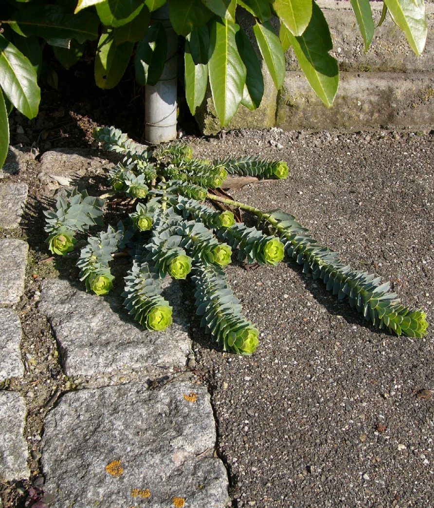 IV - VI, Ruderalstellen, Gärten Synonyme: English name: Nom francais: Nome italiano: Verbreitung in Deutschland: Gefährdung in Deutschland: Weltweite Verbreitung: Eingebürgert in: Etymologie: Häufige Zierpflanze! In Teilen der USA gilt die dort eingeschleppte Walzen- Wolfsmilch als gefährlich und invasiv. Landbesitzer sind verpflichtet, die Pflanzen von ihrem Land zu entfernen und erhalten hierzu vom Agrarministerium bebilderte Anleitungen.