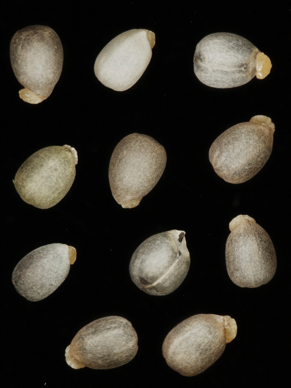 Samen eiförmig, glatt, grau, 2,2 mm lang, 1,8 mm