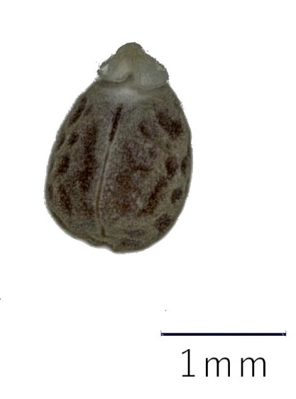 Samen 2,5 mm lang, breit eiförmig, dunkelgrau, glatt