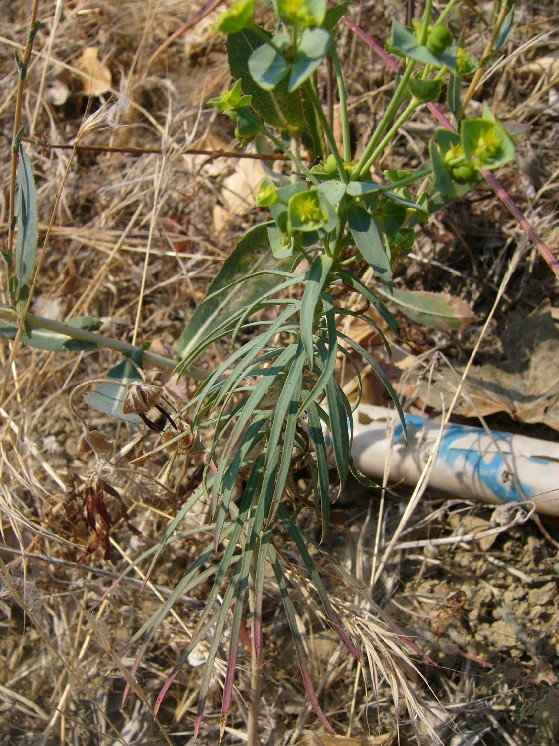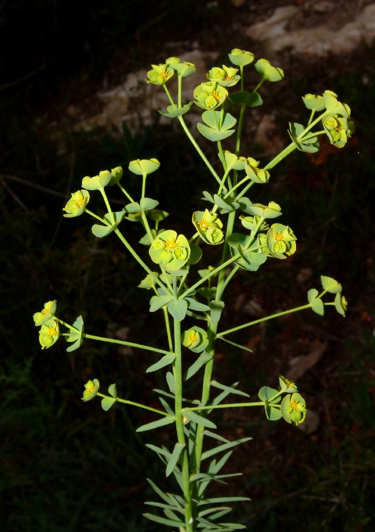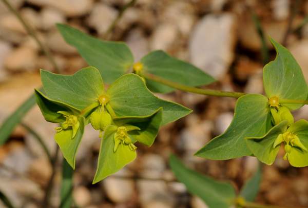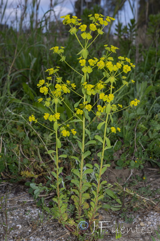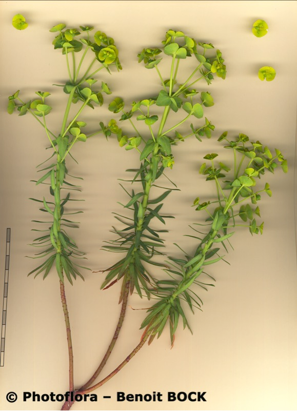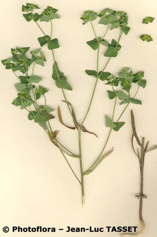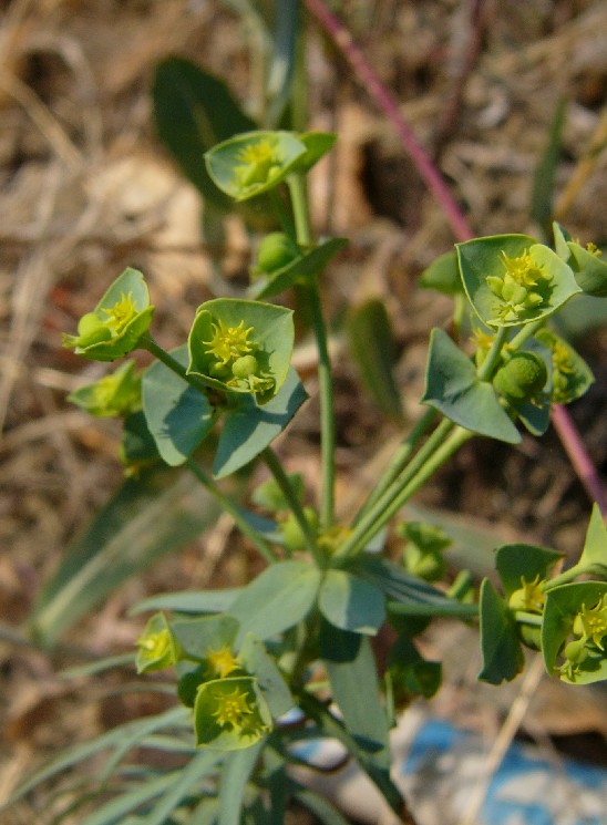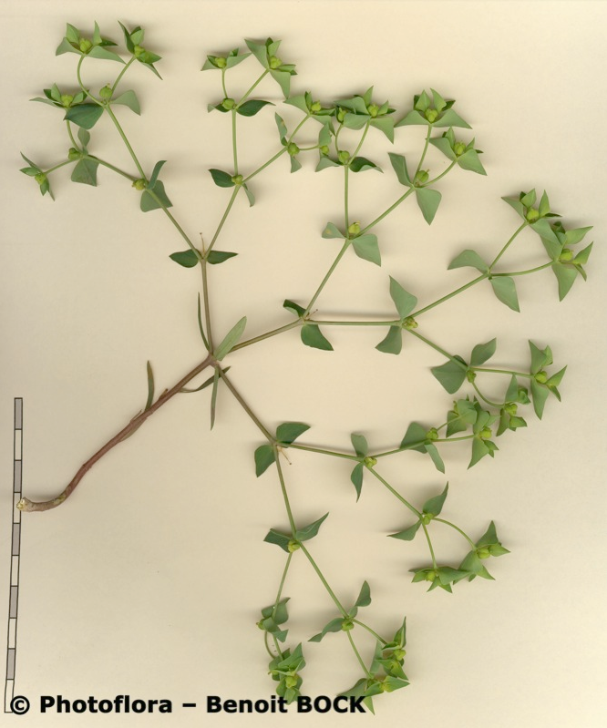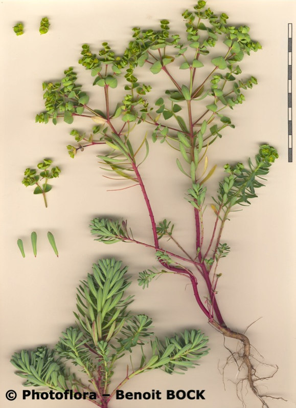 V - VI, Brachland, Ruderalstellen (0 - 1200 m) Synonyme: English name: Nom francais: Nome italiano: Weltweite Verbreitung: Eingebürgert in: Etymologie: Sehr ähnlich ist Euphorbia exigua. Bei Euphorbia exigua sind jedoch die Hüllchenblätter schmaler und die Samen warzig.