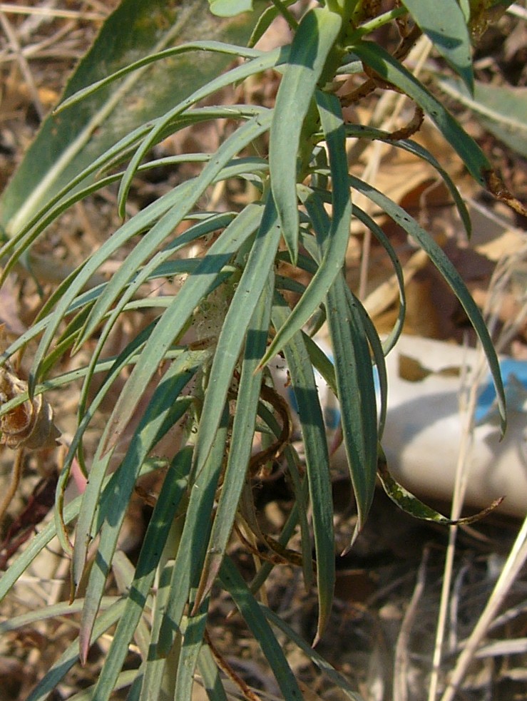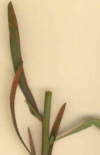 Mittlere Stängelblätter 20 - 40 mm lang, ca. 2 - 4 mm breit, ganzrandig
