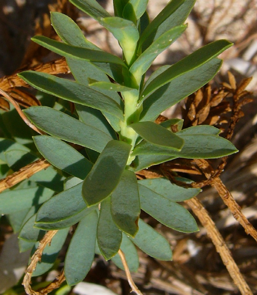 V - VII, Felsspalten, steinige Hänge (500 - 1400 m) Synonyme: English name: Weltweite Verbreitung: Etymologie: Die beiden anderen Unterarten von Euphorbia nevadensis haben elliptische Blätter (15 - 4 mal so lang wie breit)