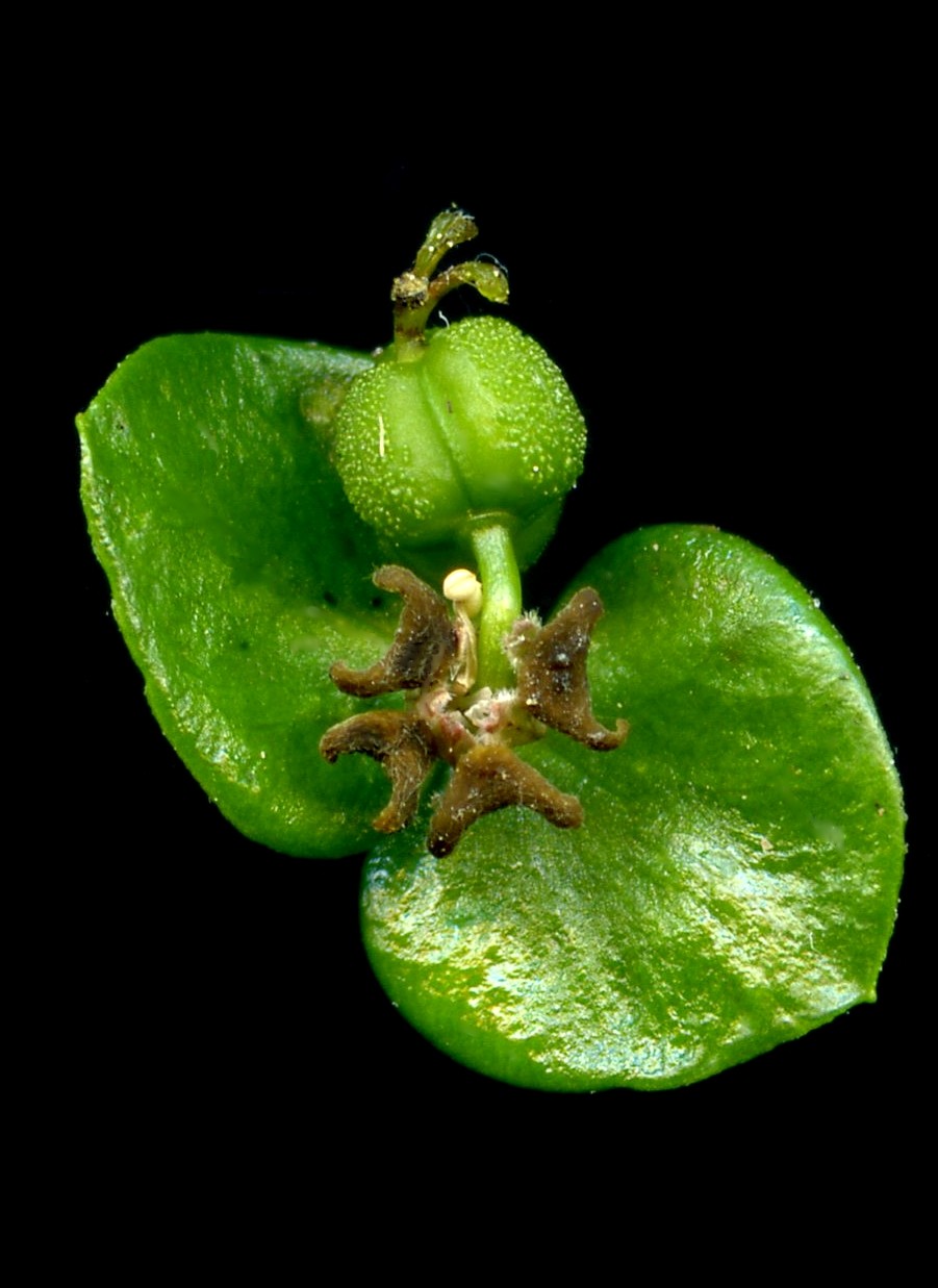 Kapsel ca. 3 mm im Durchmesser, kugelig, schwach gefurcht,