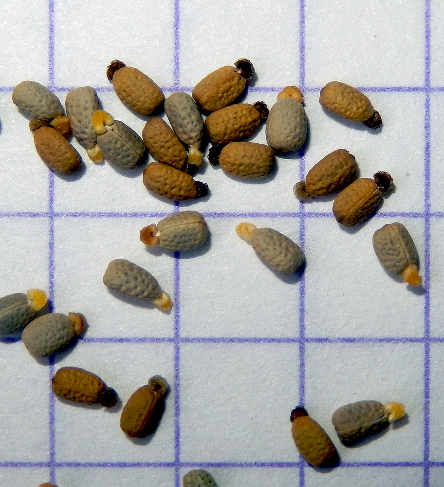 Samen elliptisch, 2,0 - 2,2 mm lang, mit vielen kleinen