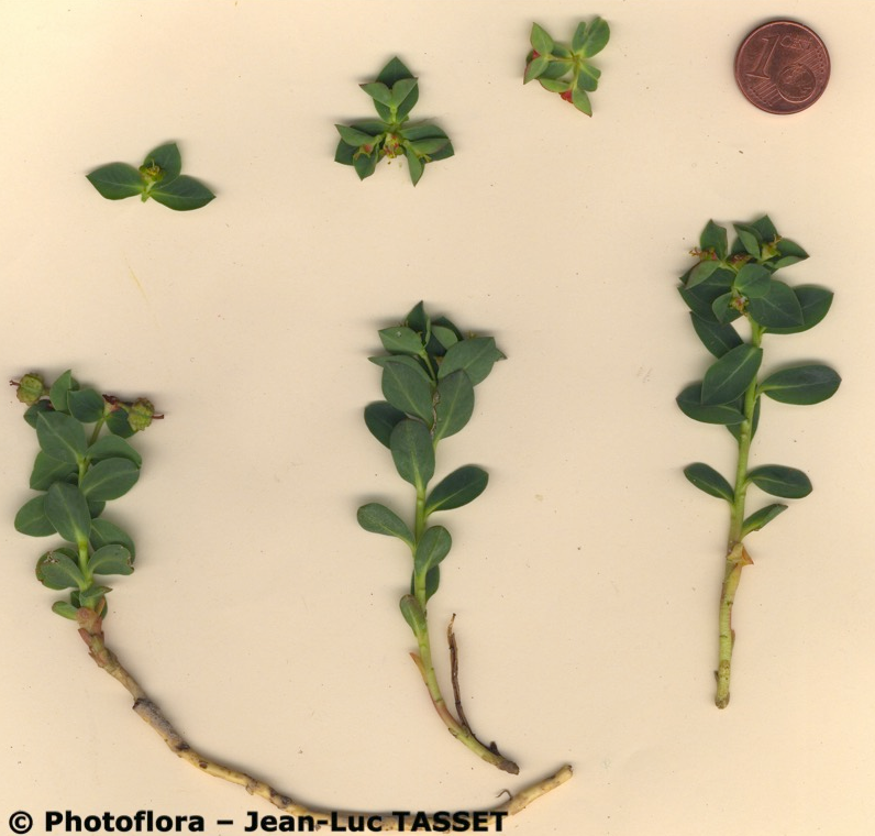 Kapsel mit halbkugeligen Warzen, Scheindolde 1 - 3- strahlig, unverzweigt, Stängel +/- kahl