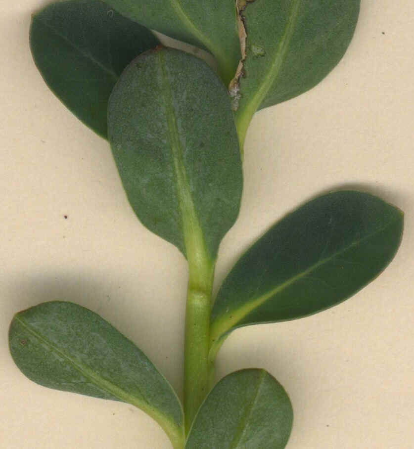 Blätter blaugrün, +/- ganzrandig, vorne mit Spitzchen, beiderseits kahl