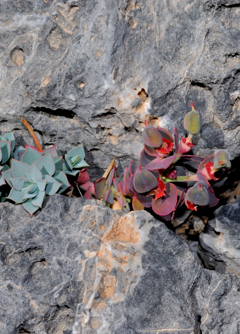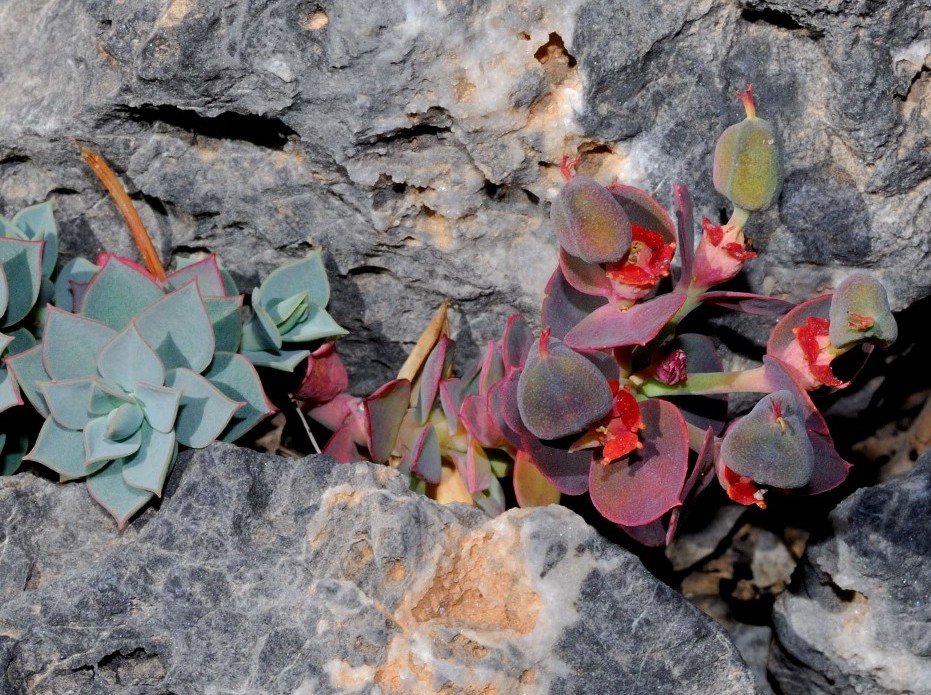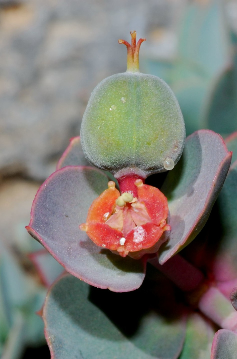 In den Cyathien fehlen Tragblätter zwischen männlichen und weiblichen Blüten Kapsel fein papillös,