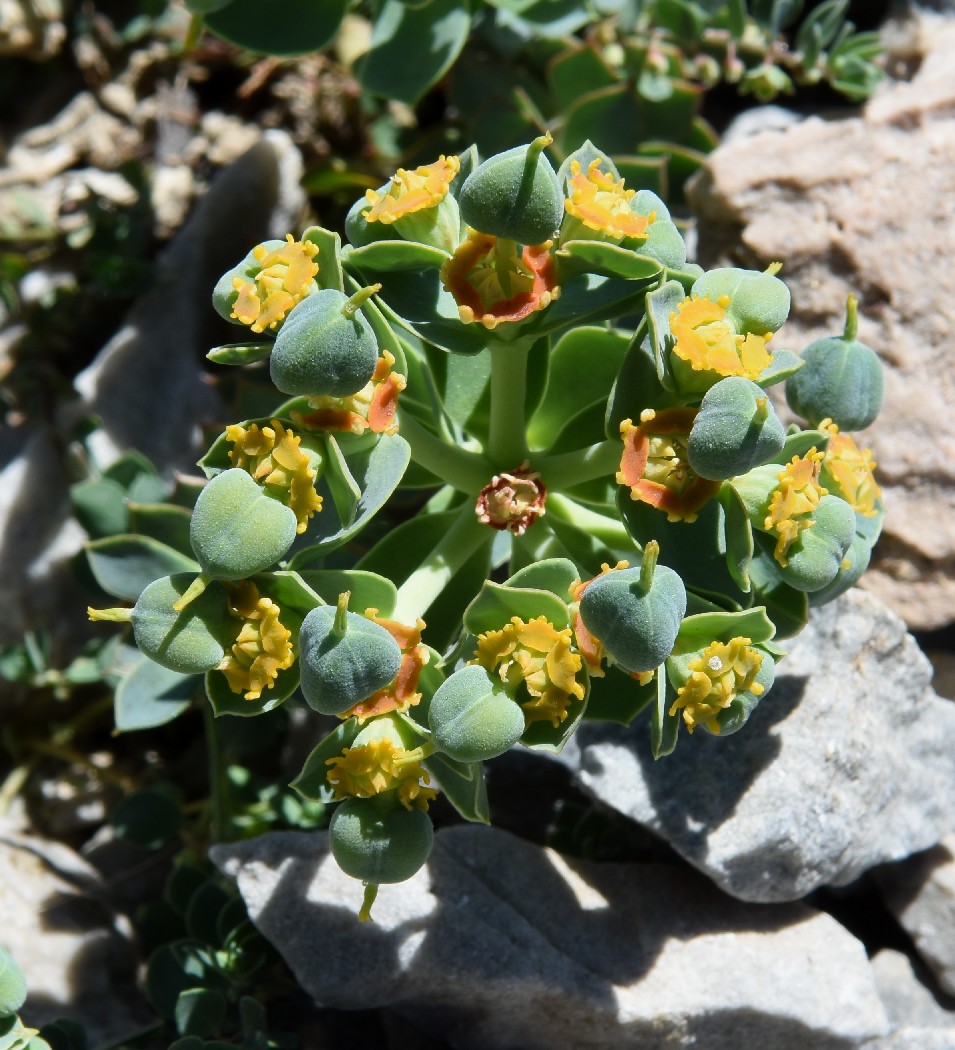 Euphorbia - Pflanze krautig, Scheindolde mit 2 - 6 Doldenstrahlen, Hüllchenblätter getrennt, Drüsenanhänge halbmondförmig, mit verbreiterten Hörnchen, Stängelblätter eiförmig oder eilanzettlich, 5 - 15 mm breit