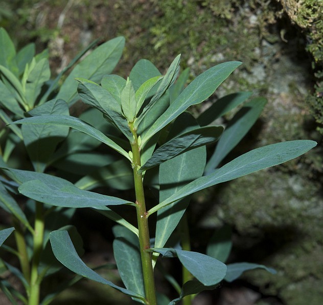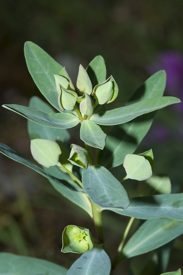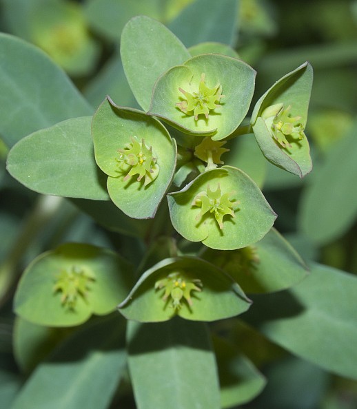 Euphorbia - Pflanze krautig, Drüsenanhänge halbmondförmig, gelb, Kapsel kahl, Hüllchenblätter paarweise verwachsen, Seitenäste unter der Dolde einzeln, nicht quirlig, Blätter +/- gleich groß und im gleichen Abstand stehend