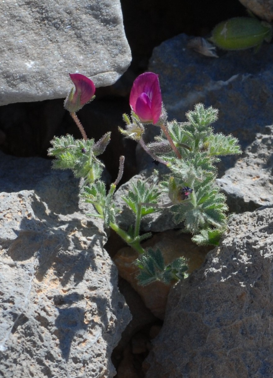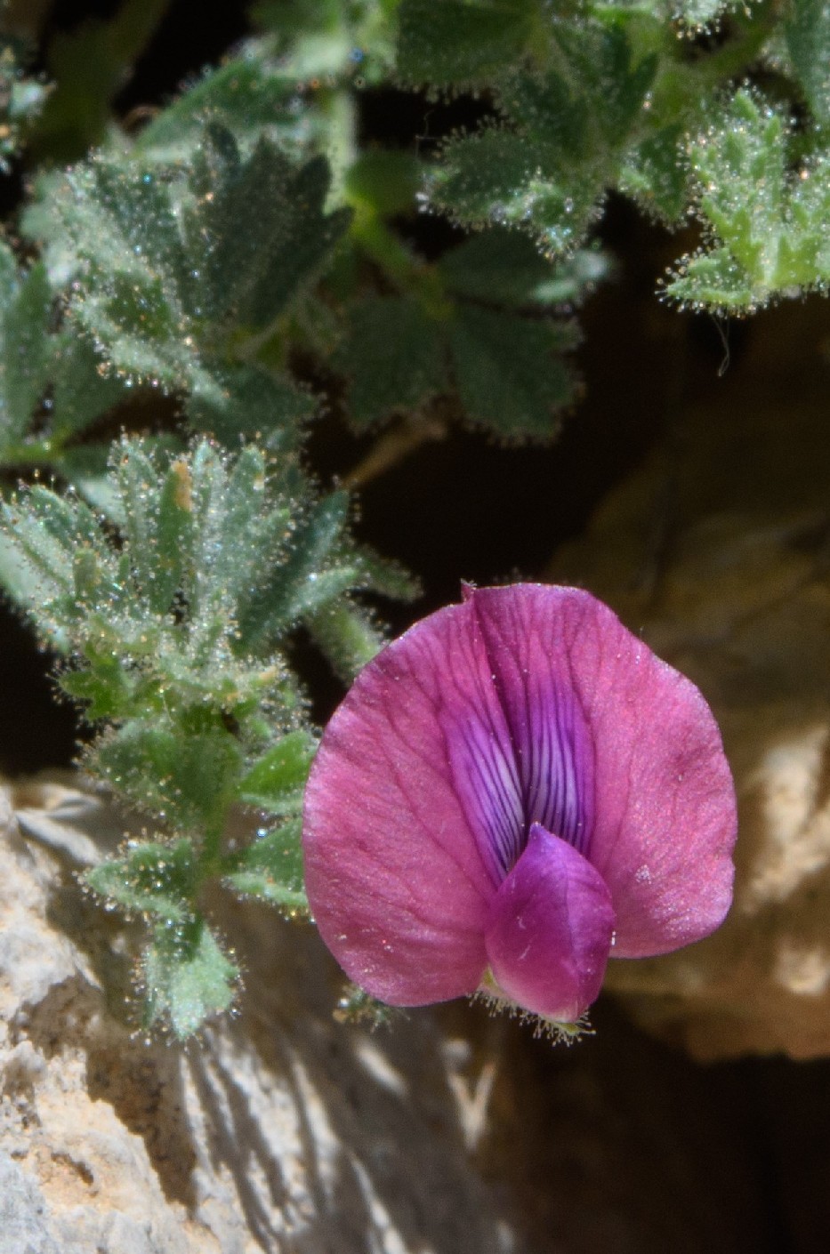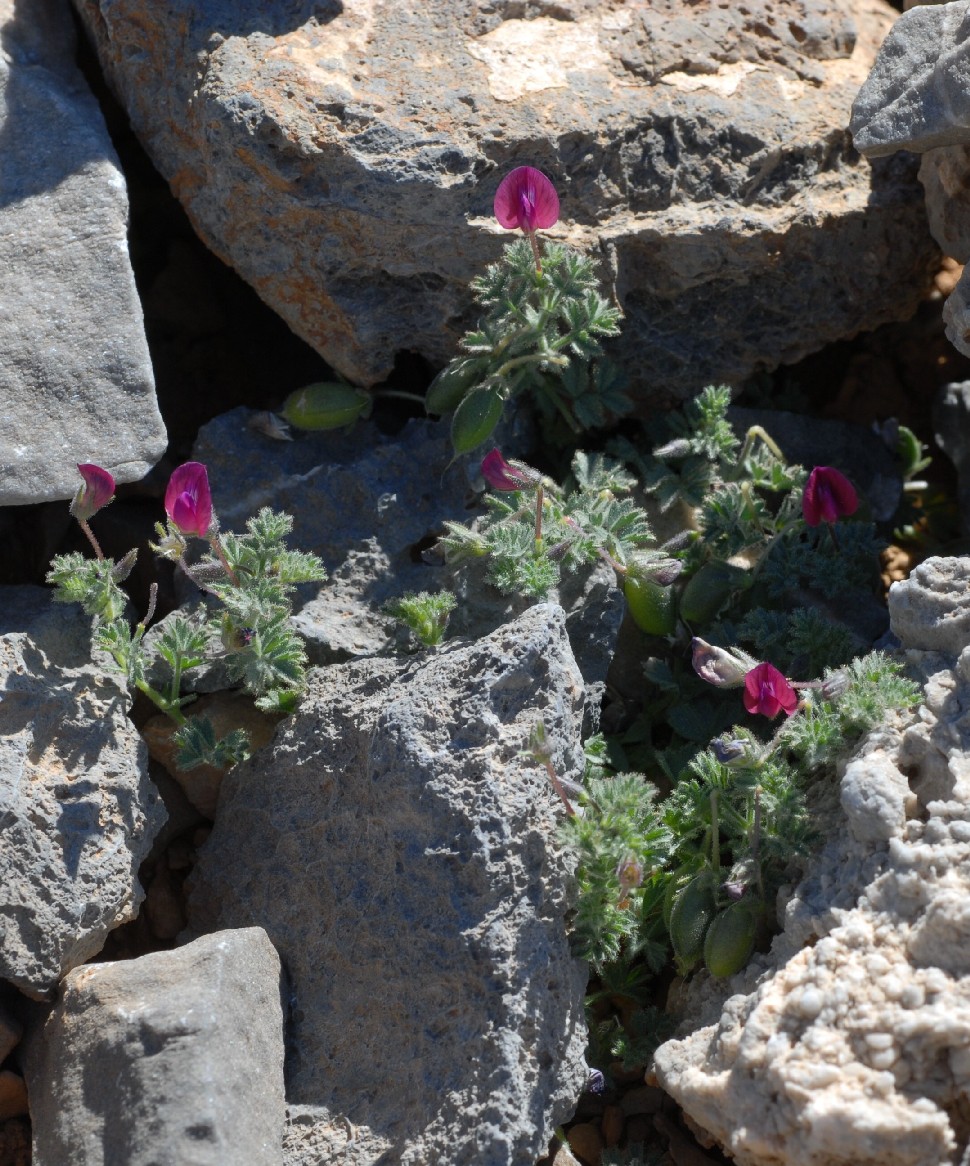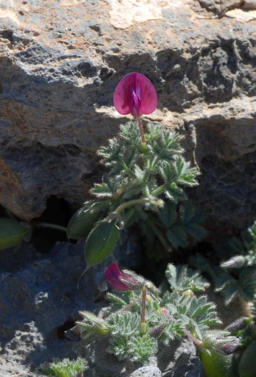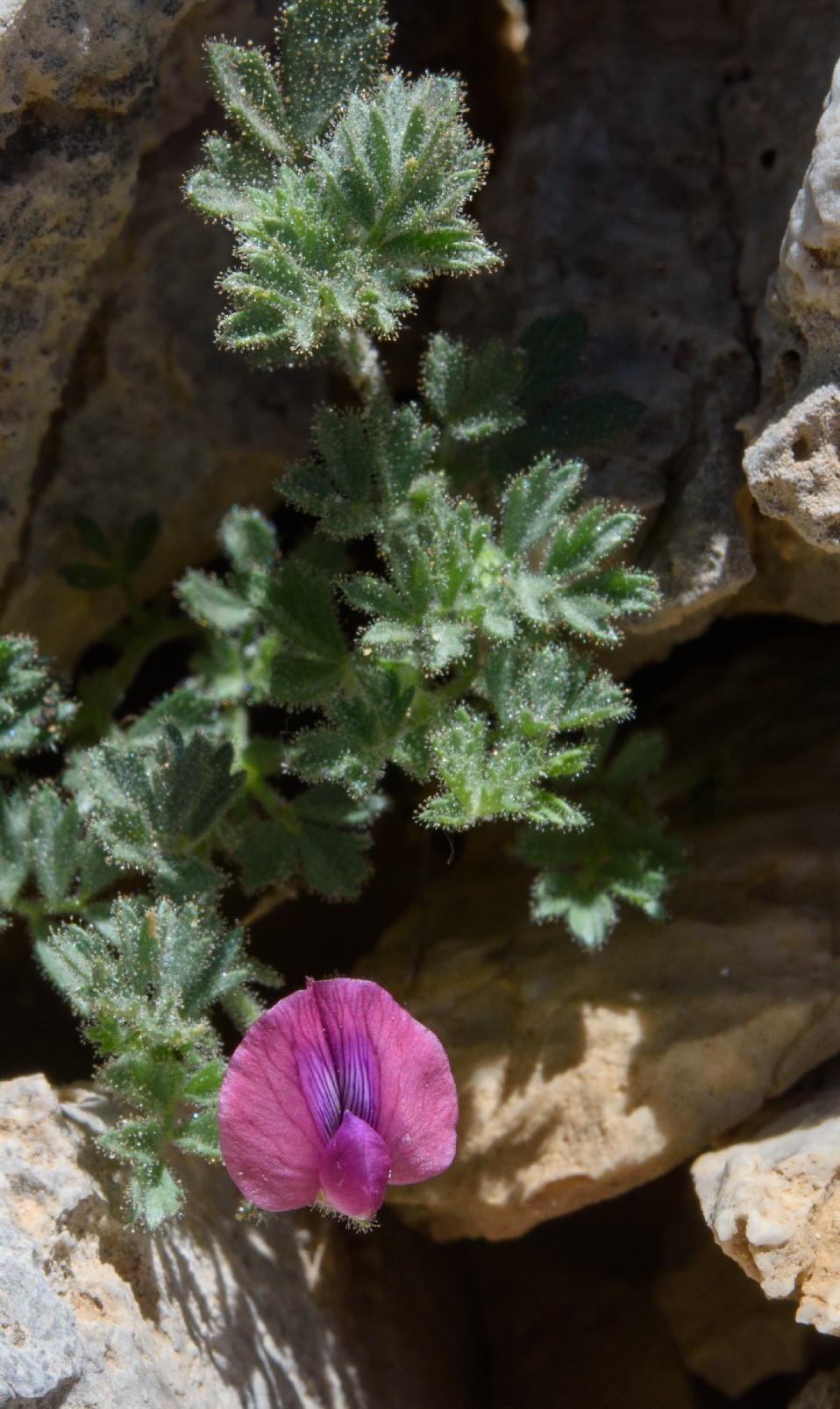 Griechenland (Sterea Ellas), Kreta Stängel 5 - 15 cm lang, Blüten rotviolett, Blätter mit 2 - 4 Fiederpaaren, Blättchen vorne tief eingeschnitten > 1