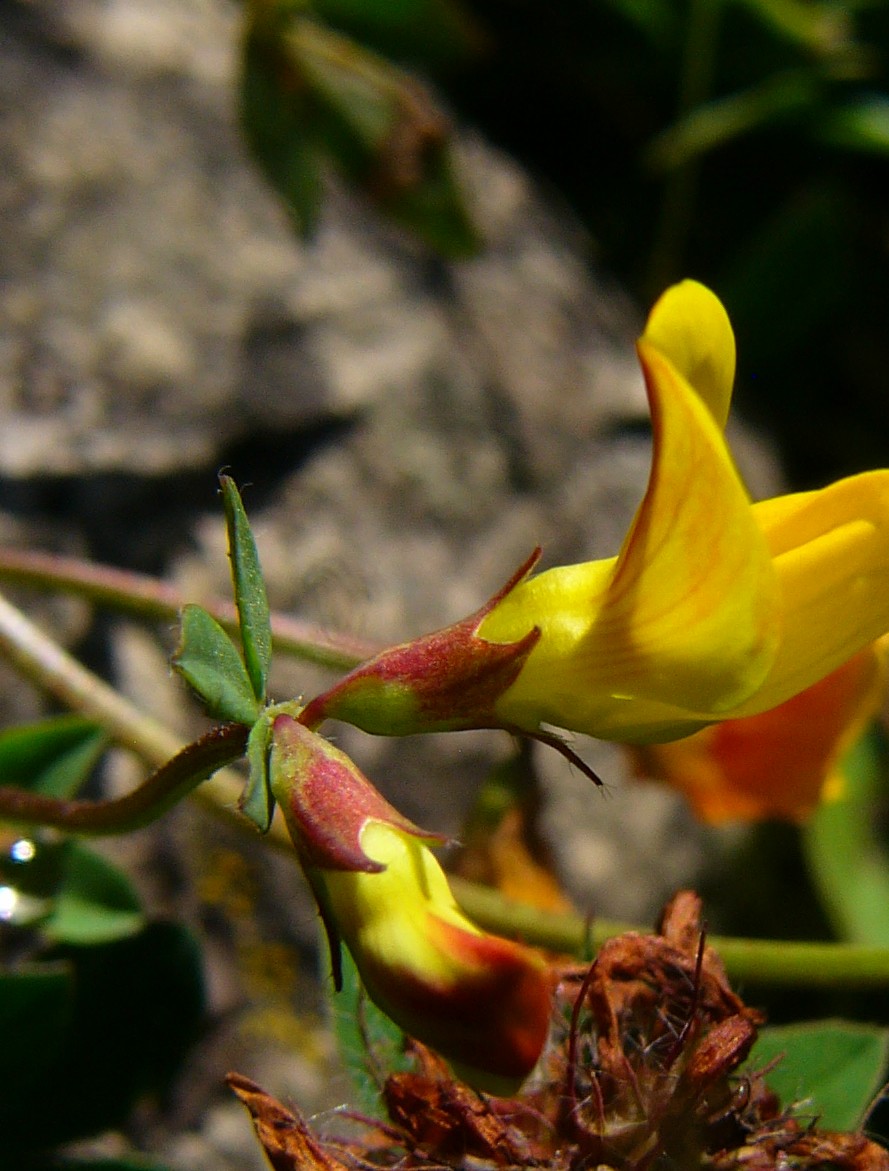 Blüten gelb, oft rötlich überlaufen, Schiffchenspitze gelb